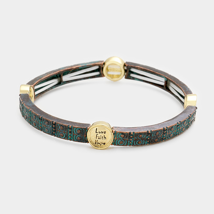 Western Boho Metal Butterfly Embossed Round Charm Beaded Stretch Bracelet