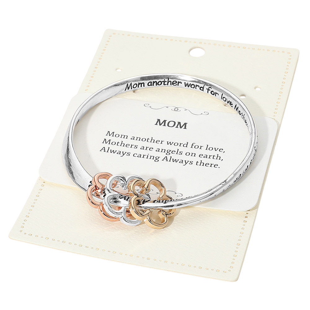 Details • Size : 0.5" H, 2.5" D • Showcase heartfelt sentiment with this mom love message bracelet featuring engraved words of care and devotion paired with decorative link accents. A meaningful accessory for celebrating motherhood, honoring special bonds, and gifting on occasions filled with gratitude and lasting appreciation. • Lead and Nickel Compliant