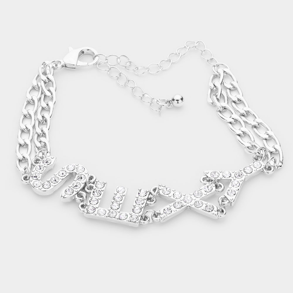 -Y- White Gold Dipped Metal Initial Monogram Charm Bracelet