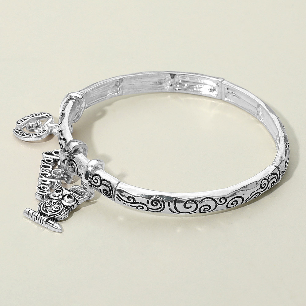• Honor educators with this Teacher charm bracelet featuring a heartfelt inscription, intricate owl charm, and decorative heart pendant. A meaningful appreciation gift that celebrates teaching as a lasting act of inspiration.