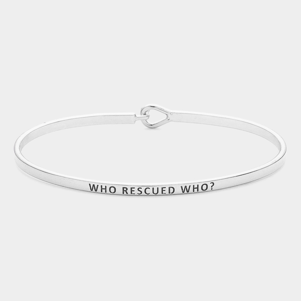 "Who Rescued Who?" Thin Brass Metal Hook Bracelet