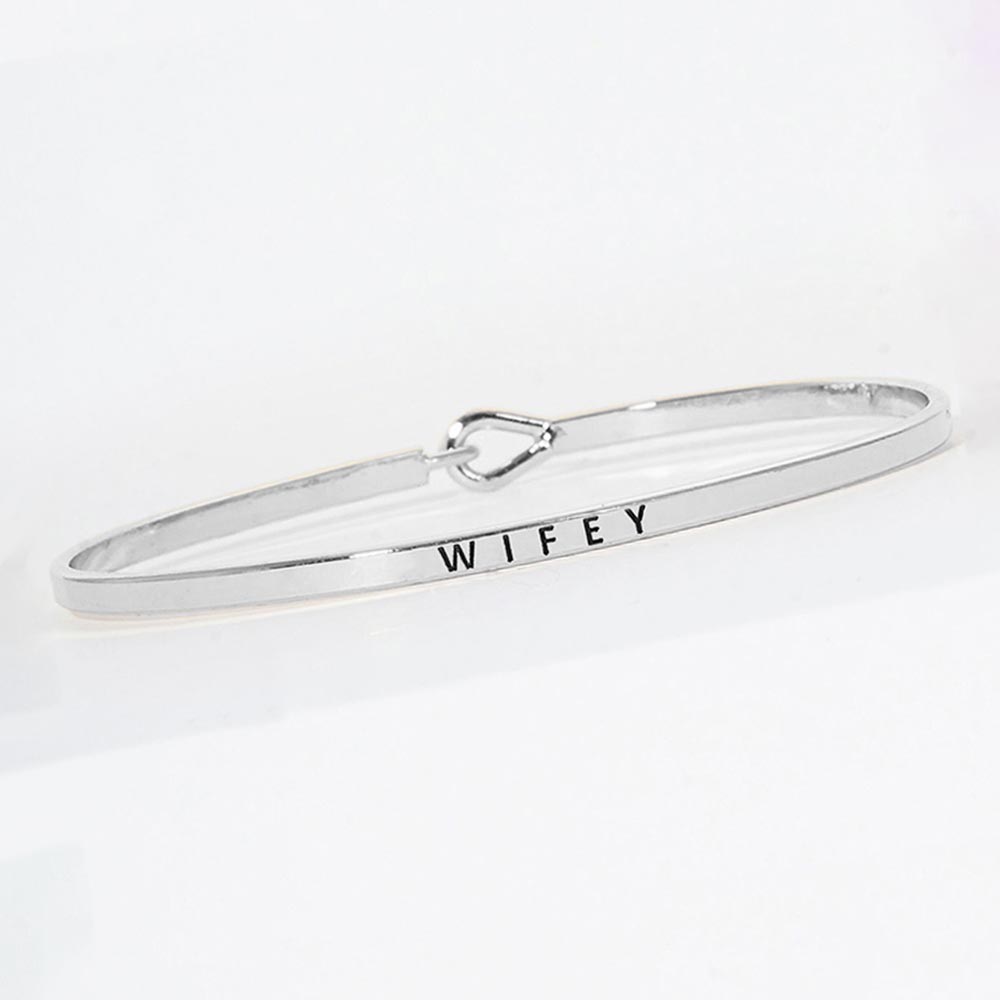 WIFEY Engraved Thin Brass Metal Bangle Bracelet