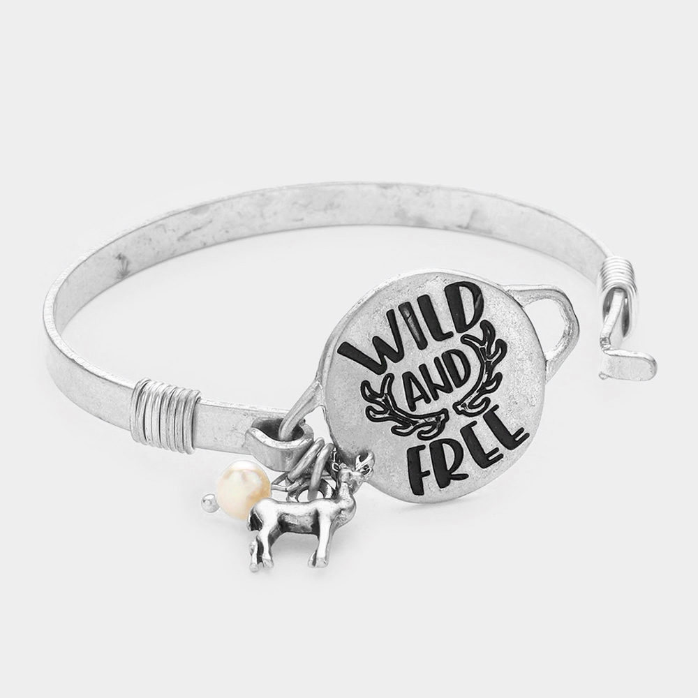 Wild and Free Message Deer Charm Hook Bracelet