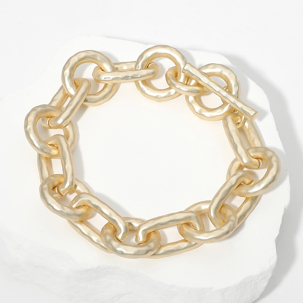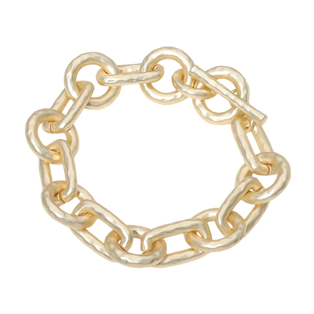 14K Gold Plated Matte Chunky Chain Toggle Bracelet