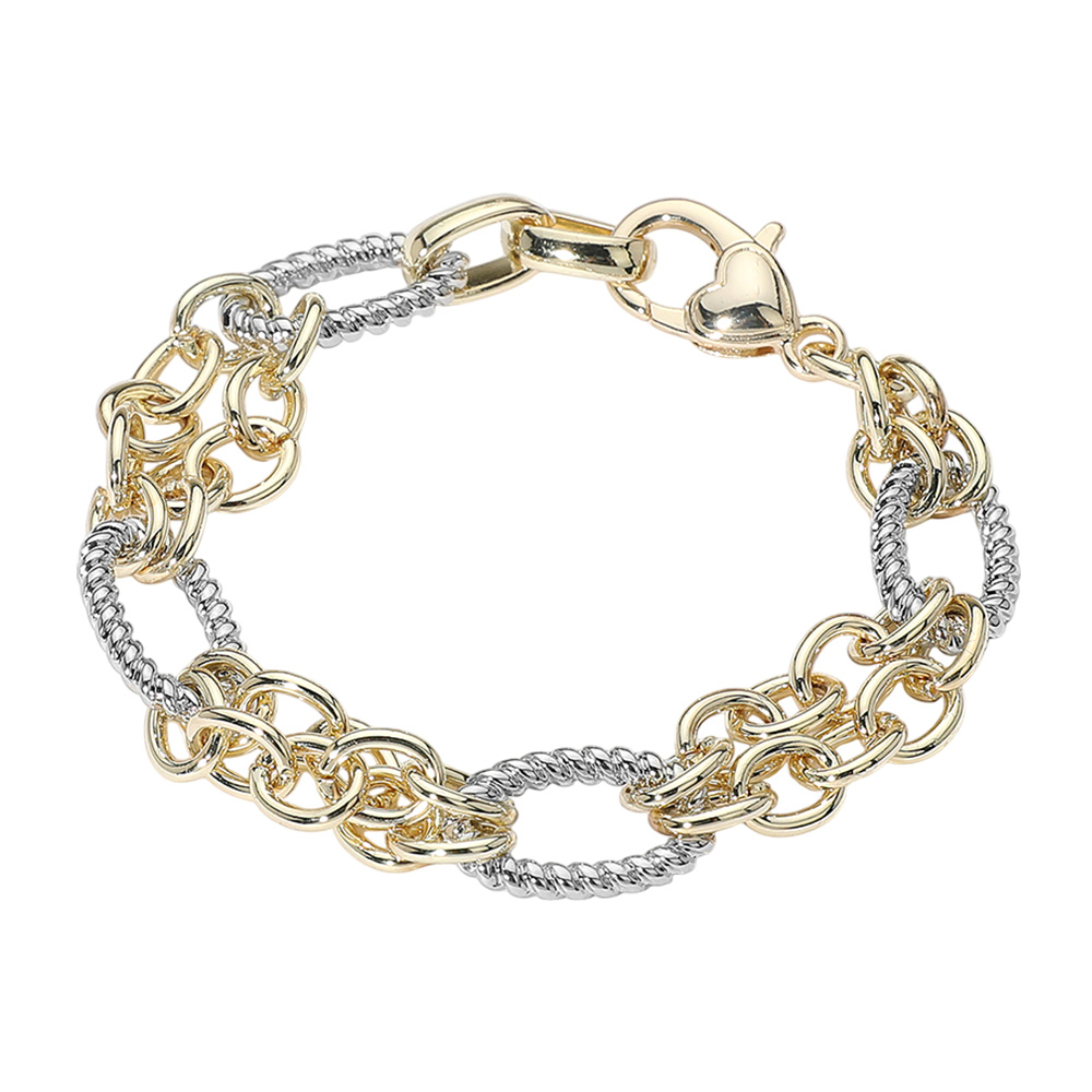 14K Gold Plated Two Tone Oval Chain Link Bracelet