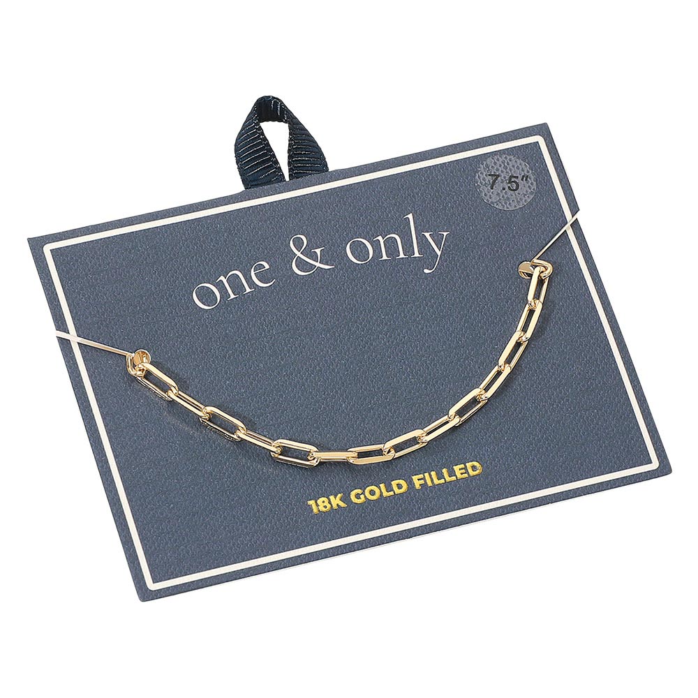 • Elegant chain bracelet featuring a minimalist link design for timeless sophistication. Lightweight and versatile, it’s perfect for layering or wearing alone. Presented on a “one & only” card for effortless gifting and everyday elegance.
