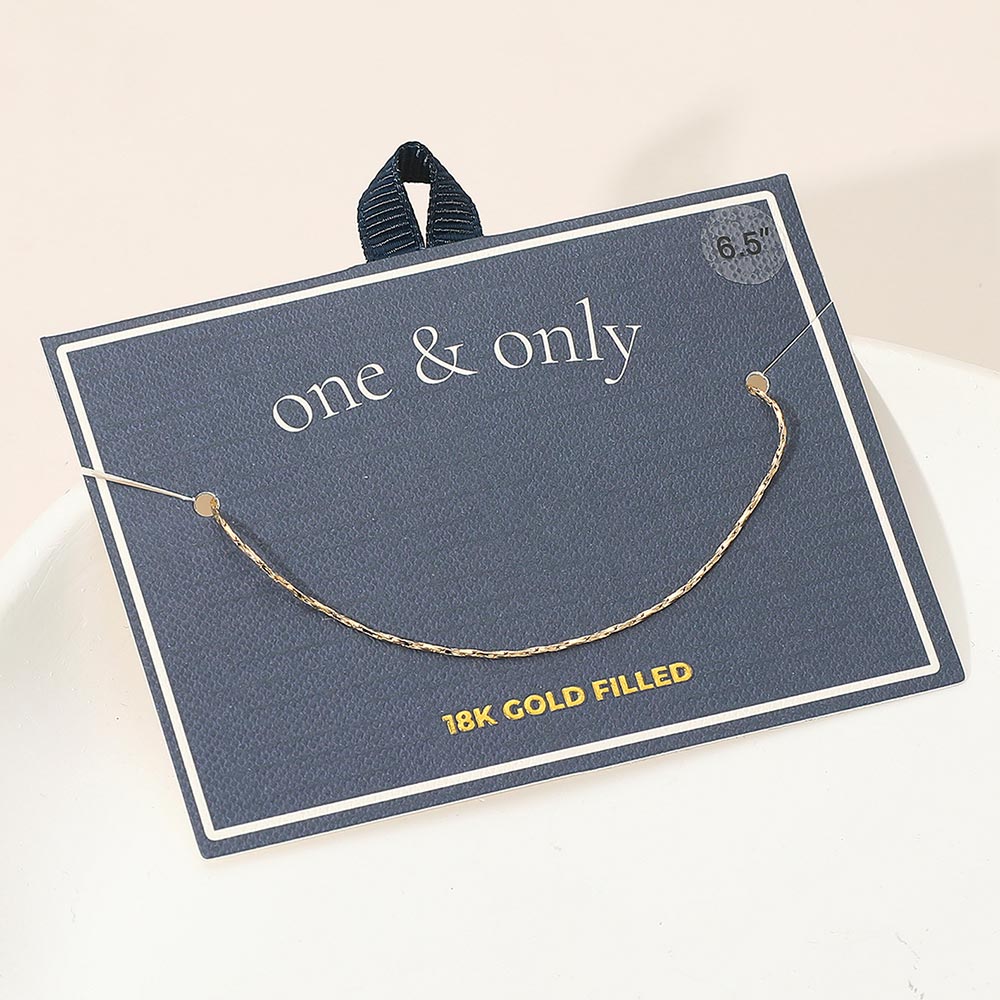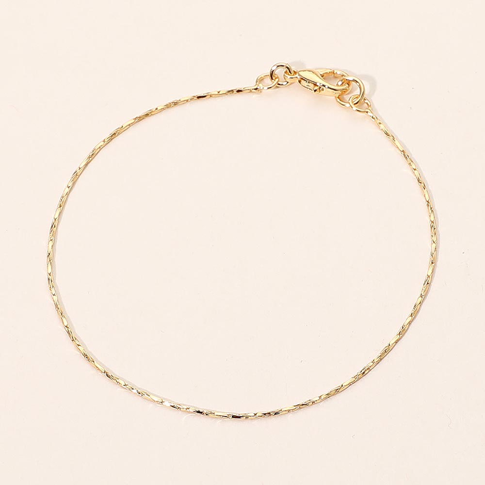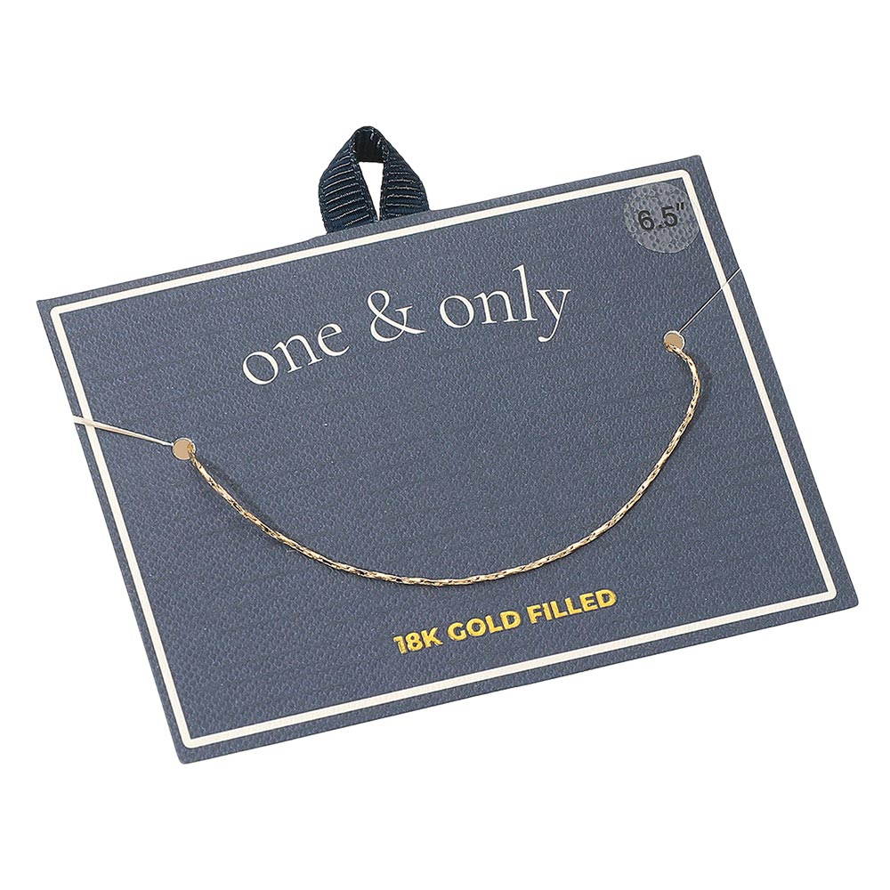 Details • Size : 0.1" H (1mm), 6.5" L • Lobster Clasp Closure • Delicate rope chain bracelet featuring a twisted link design that catches light beautifully. Its sleek and elegant finish makes it perfect for layering or solo wear, adding timeless sophistication to both everyday and formal looks. • Gold Filled • Lead and Nickel Compliant • Made In Brazil