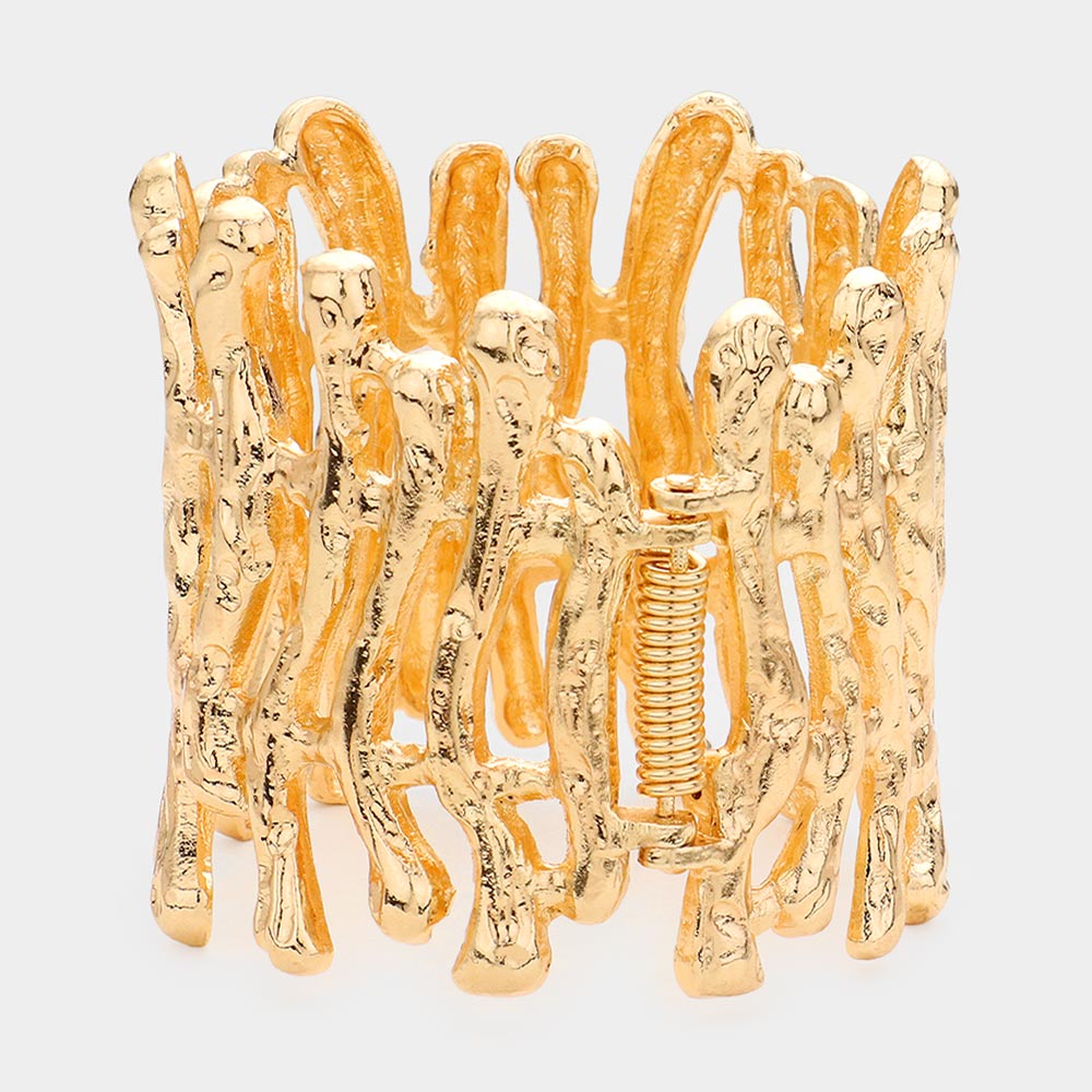 4PCS - Irregular Metal Round Charm Natural Stone Wood Beaded Stretch Bracelets