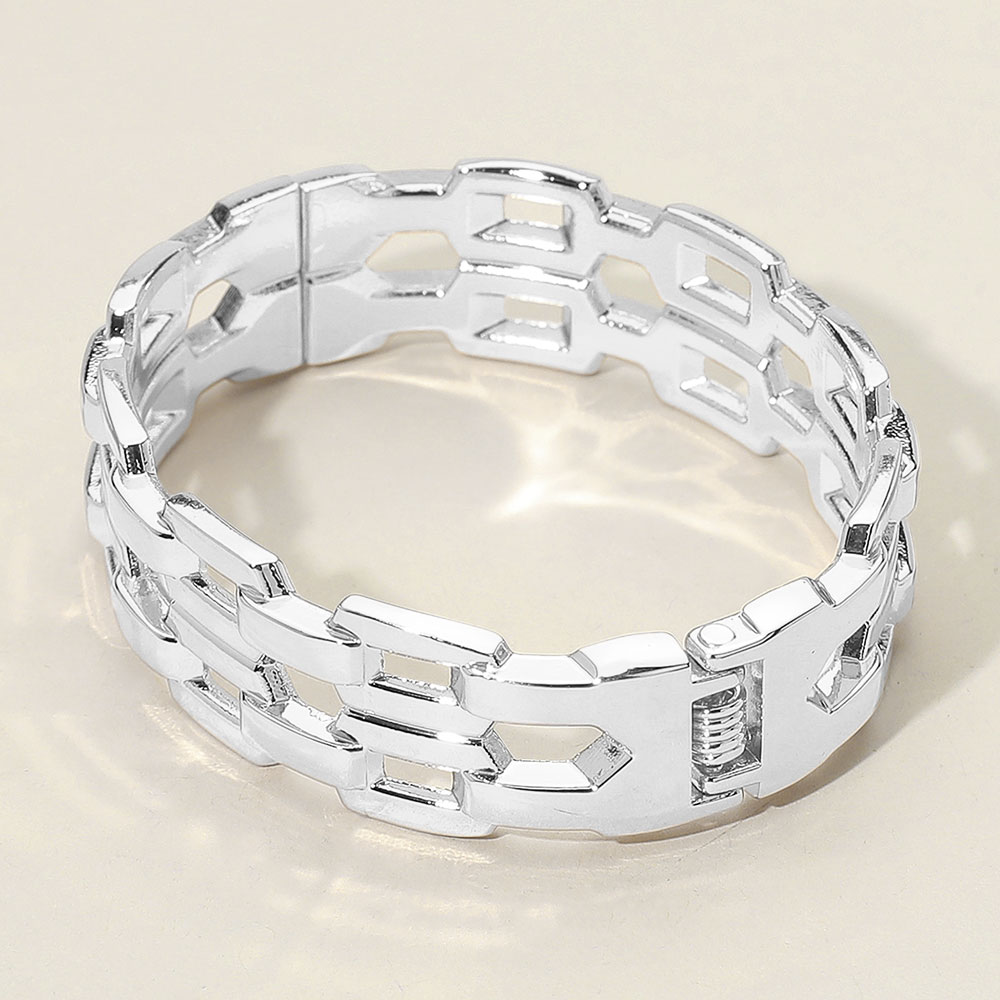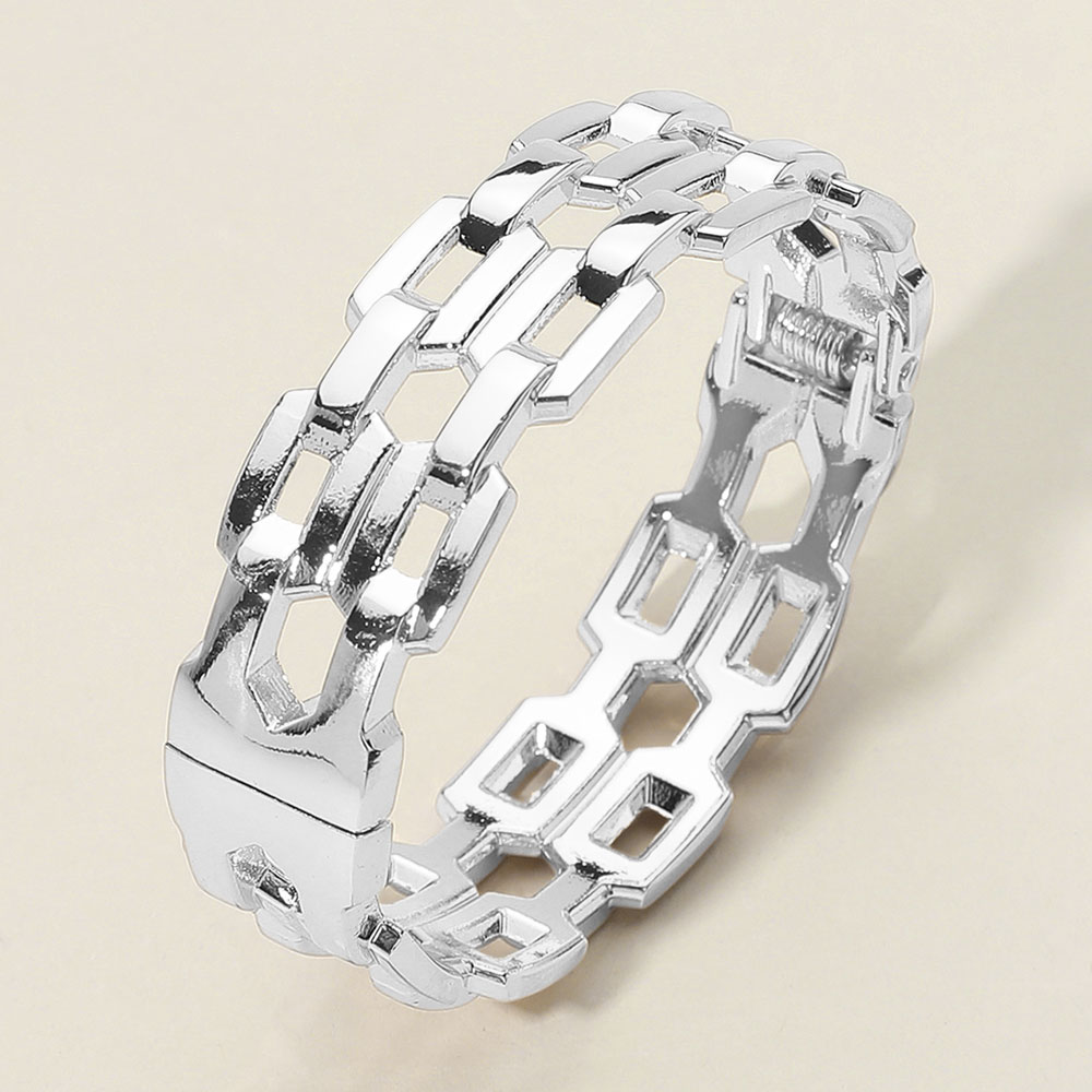 Chunky Flat Link Chain Hinged Bangle Bracelet