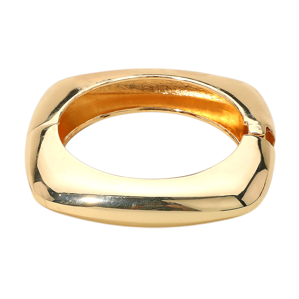 Details • Size : 0.5" H, 2.2" D • Hinged Closure • This bold bangle bracelet features a smooth, square-edged silhouette with a high-gloss finish. A modern take on minimalism, its clean lines and structured form make it an ideal statement piece for both daywear and elevated evening looks. • Lead and Nickel Compliant