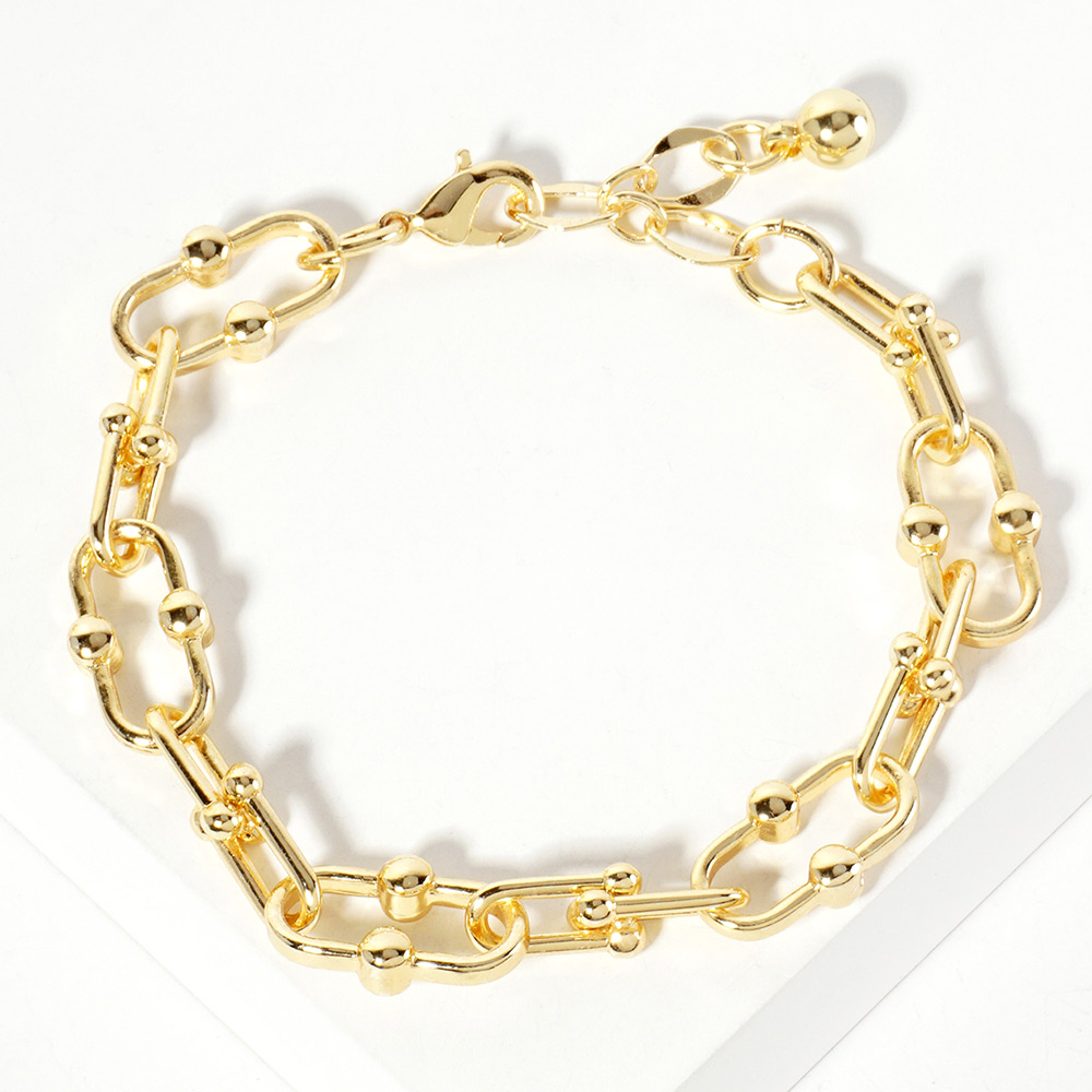 Gold Dipped Bead Pointed Oval Link Chain Bracelet