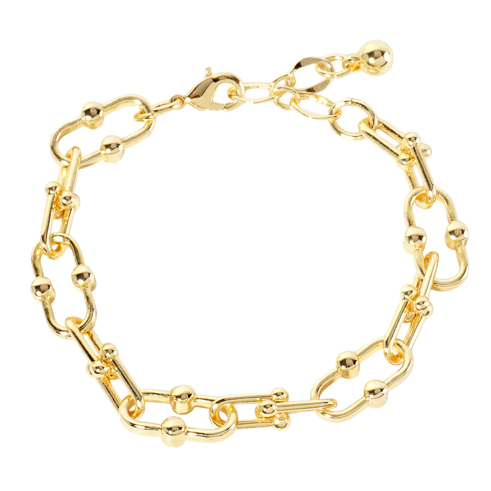 • Add a refined touch to your ensemble with this modern link bracelet, featuring a clean open-link design accented by polished beaded details. Perfect for layering or wearing solo, this versatile piece effortlessly complements both casual and formal attire.