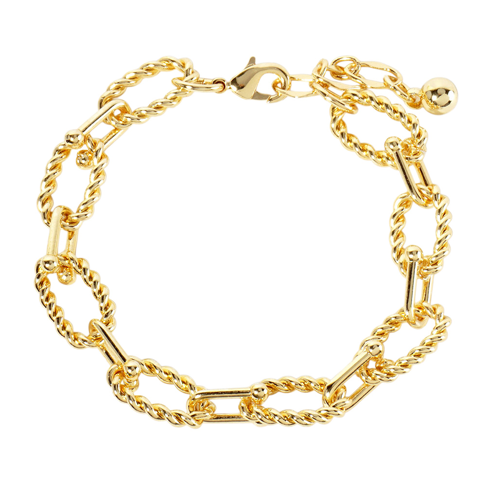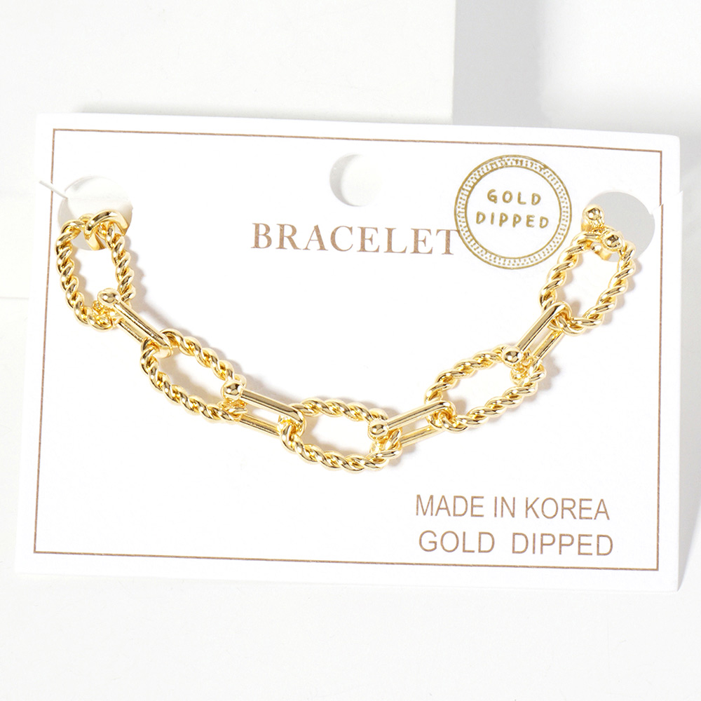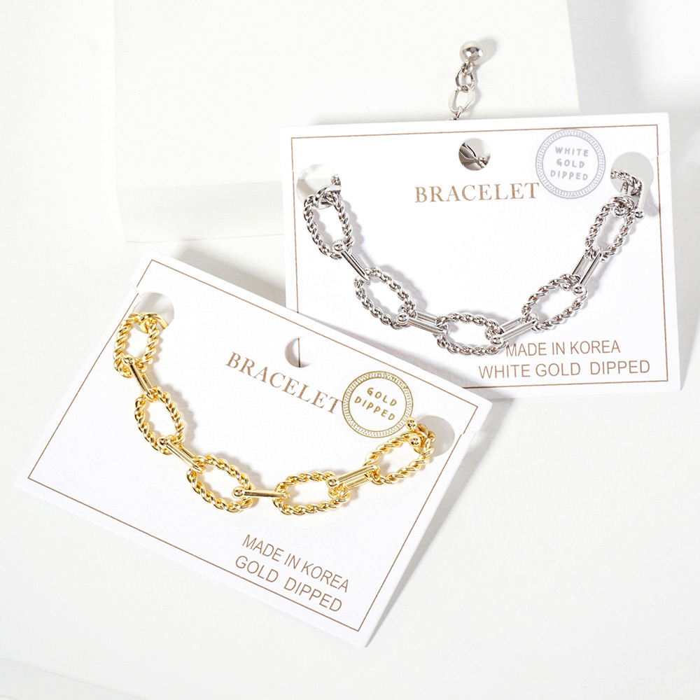 White Gold Dipped Textured Oval Link Chain Bracelet