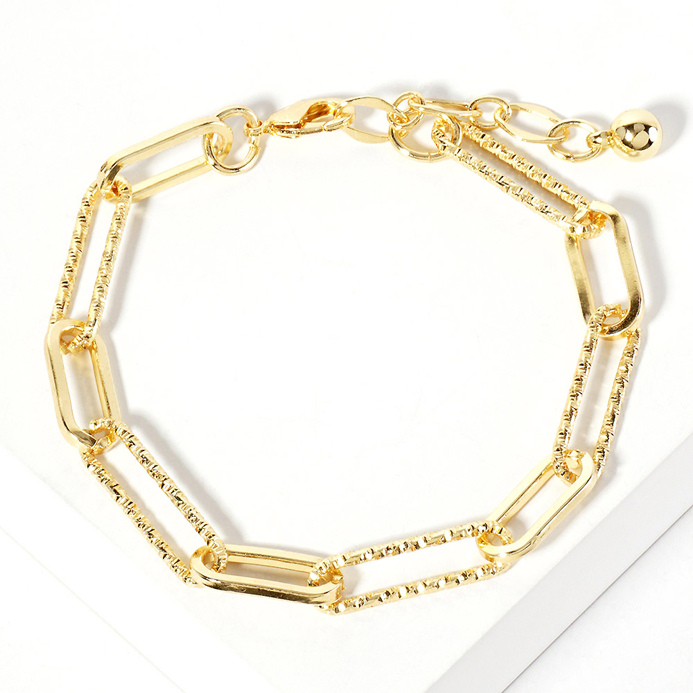 White Gold Dipped Textured Paperclip Chain Bracelet