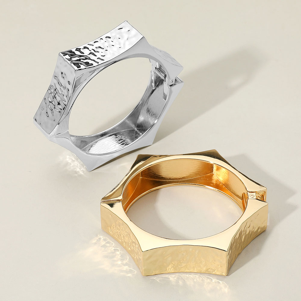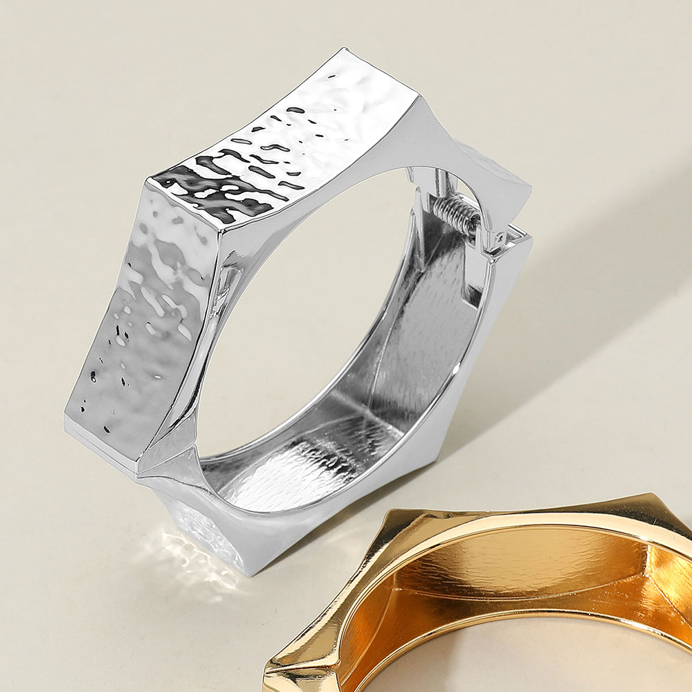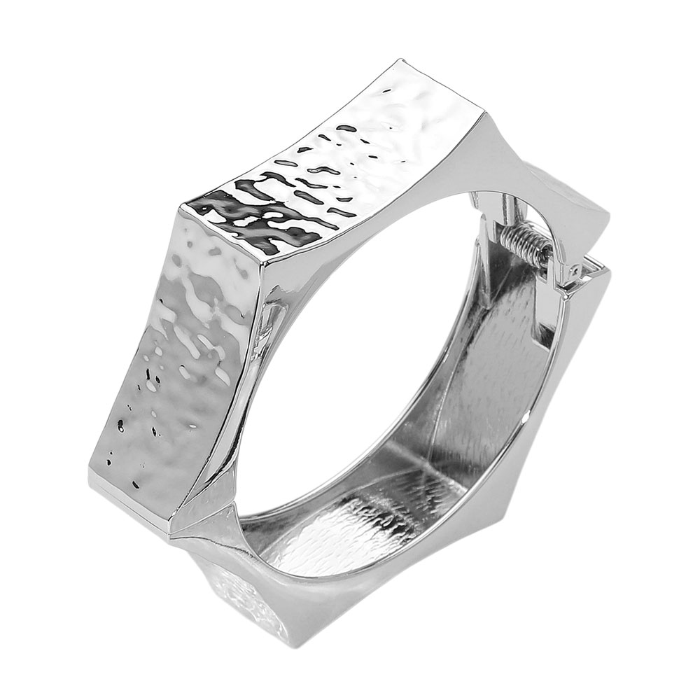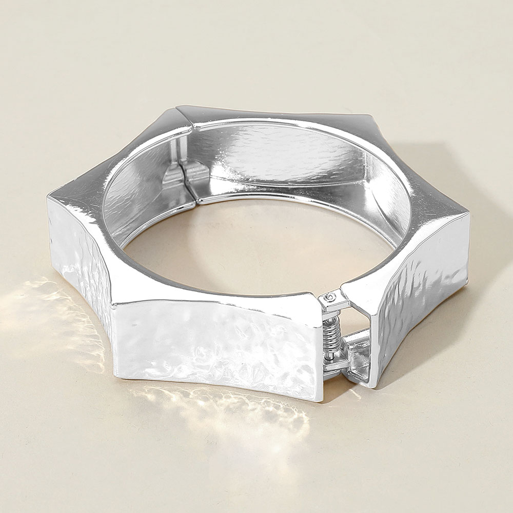Hammered Metal Geometric Spike Hinged Bangle Bracelet