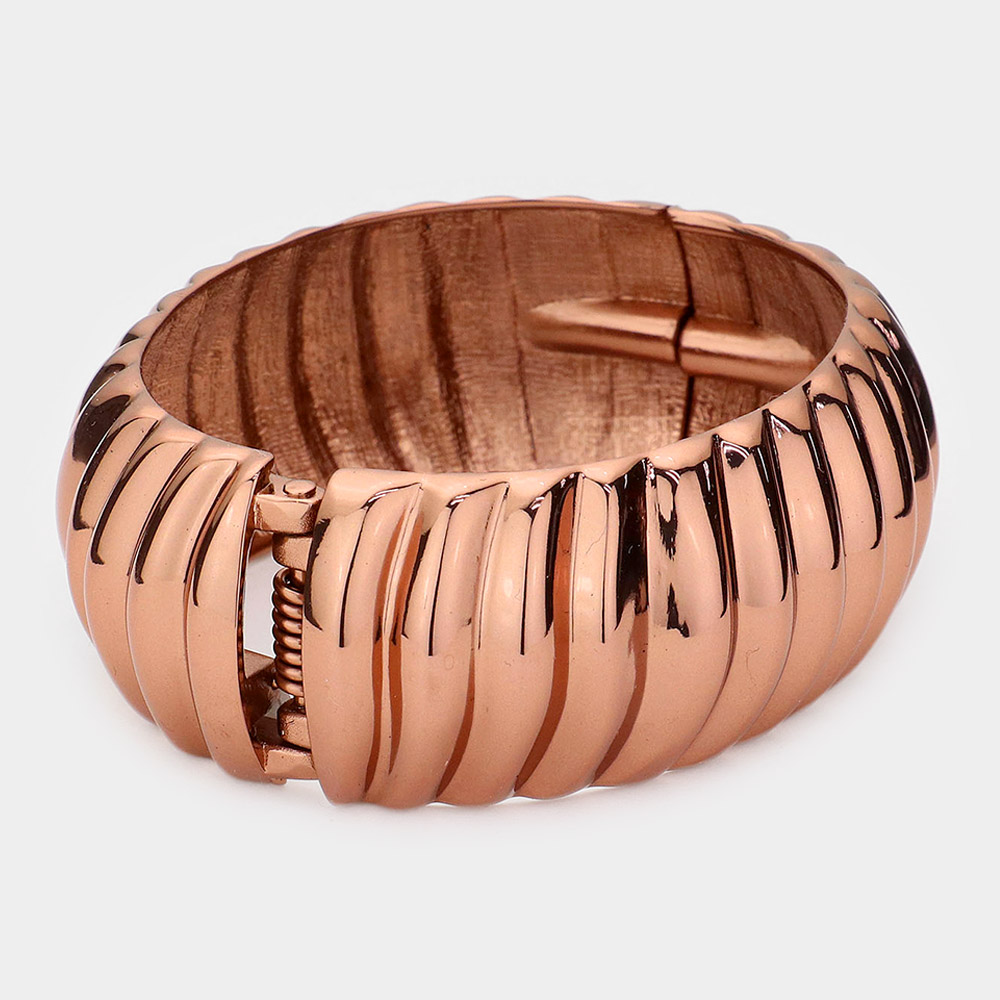 Wide Matte Metal Ribbed Stretch Bracelet