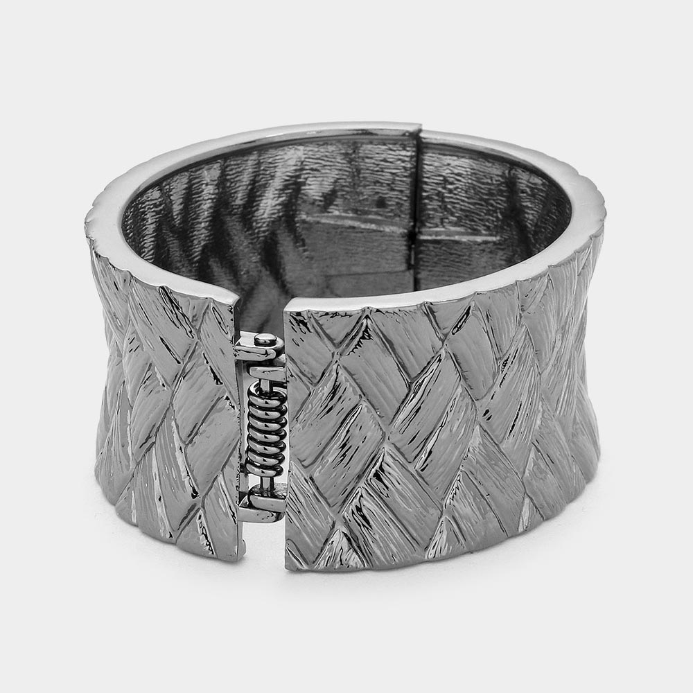 Crystal Rhinestone Crocodile/Alligator Embellished Evening Hinged Cuff Bracelet