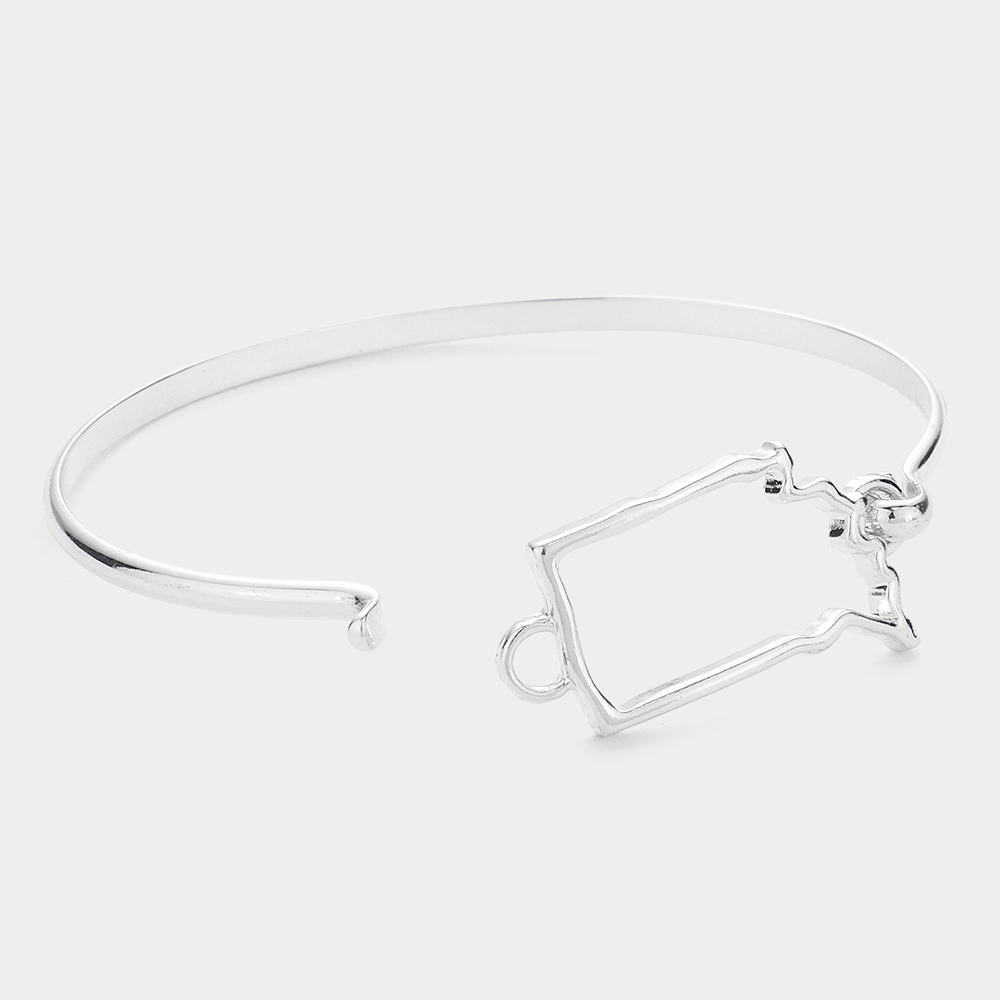 Stone Paved Center Textured Metal Wide Cuff Bracelet