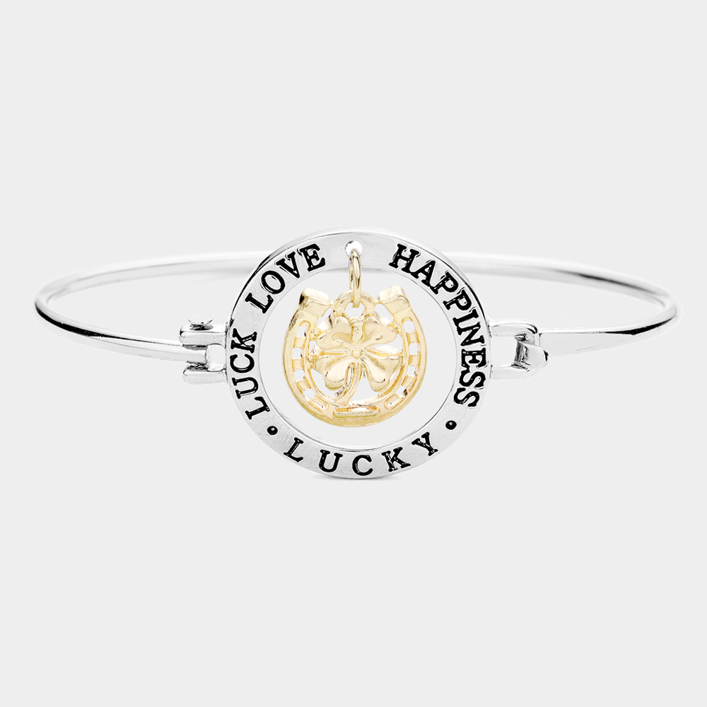 "Luck Love Happiness Lucky" Four Leaf Clover Hook Bracelet