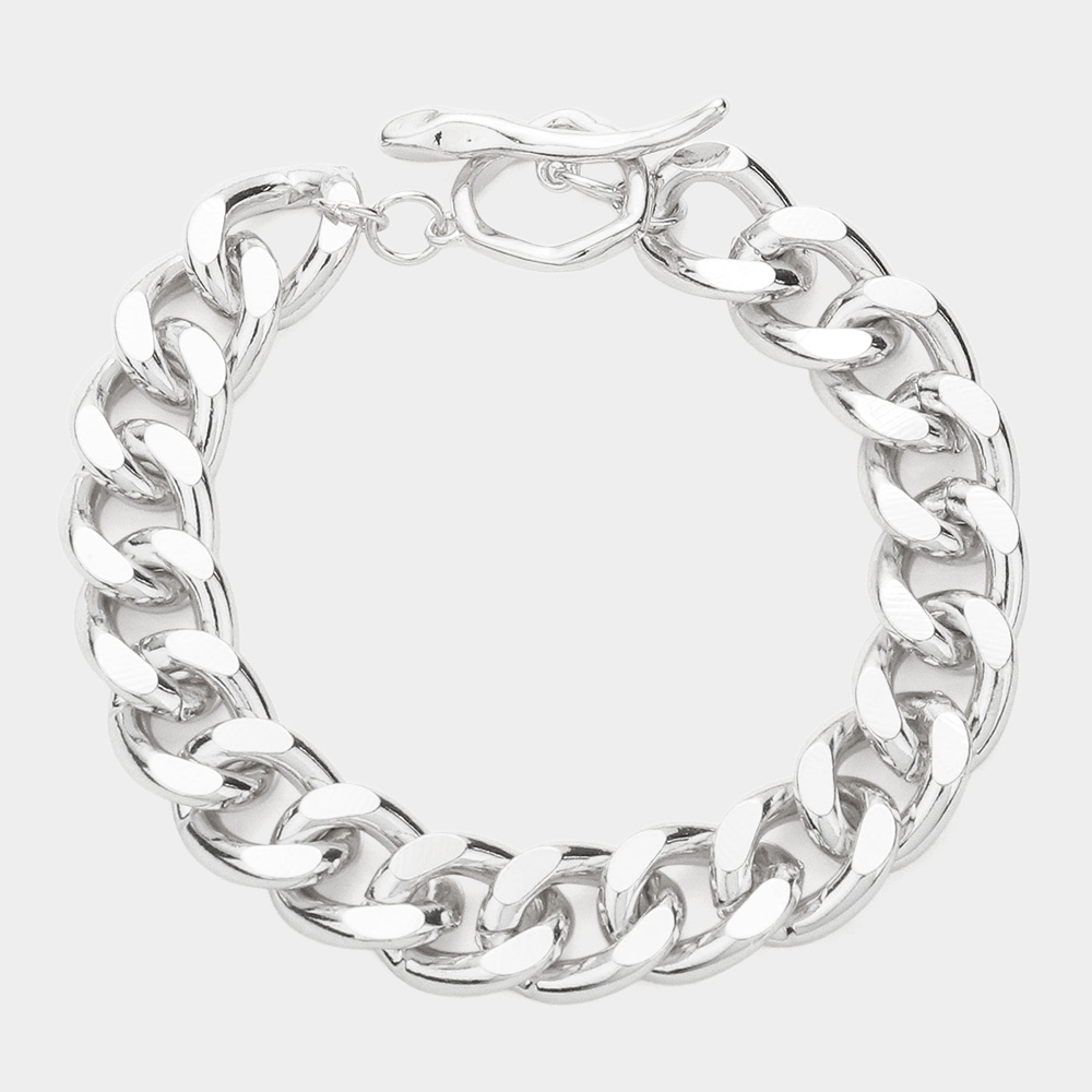 Stainless Steel CZ Embellished Metal Chain Link Bracelet