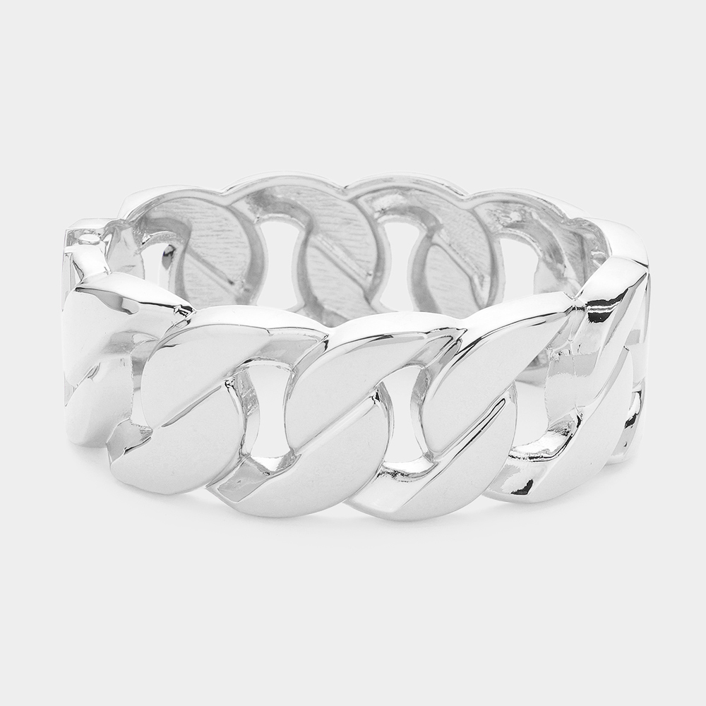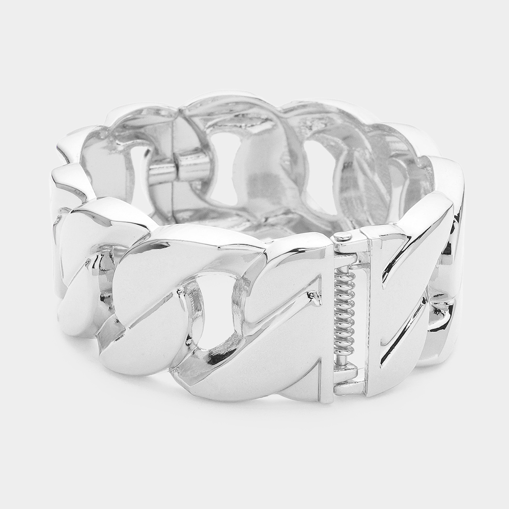 Metal Chunky Cuban Chain Hinged Bangle Bracelet