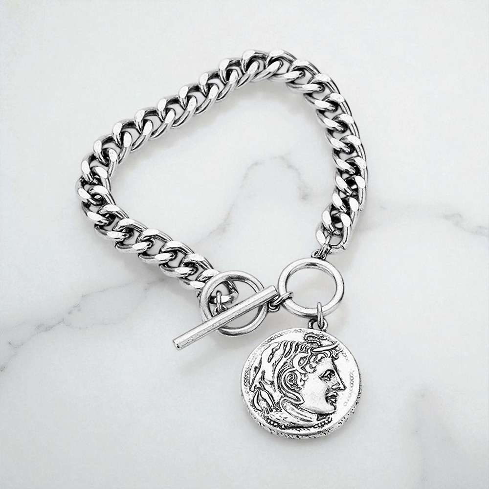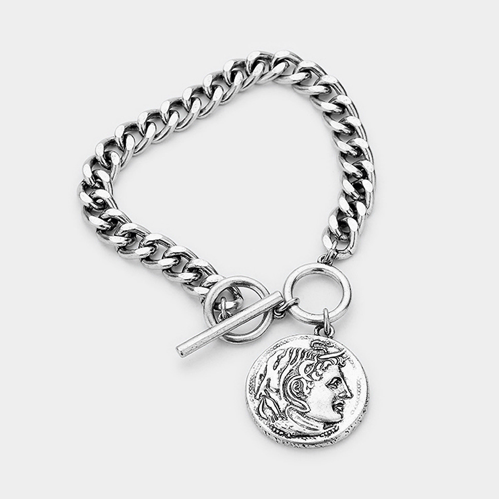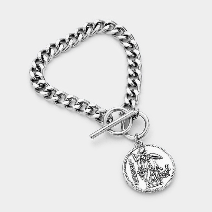 Vintage Stone Accent Antique Metal Mixed Heart Swirl Sunburst Crescent Charm Beaded Stretch Bracelet