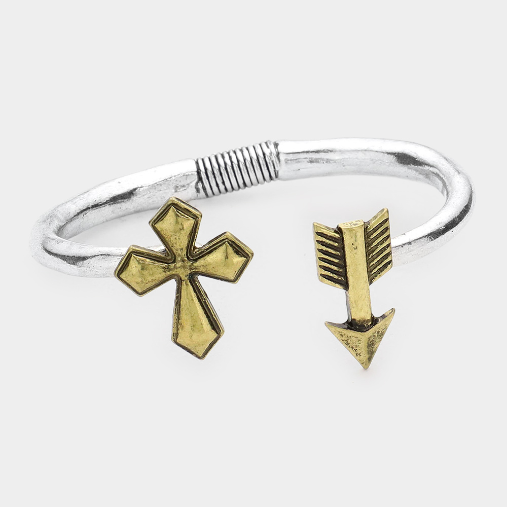 Stone Paved Arrow Pointed Cupid Charm Beaded Adjustable Bracelet
