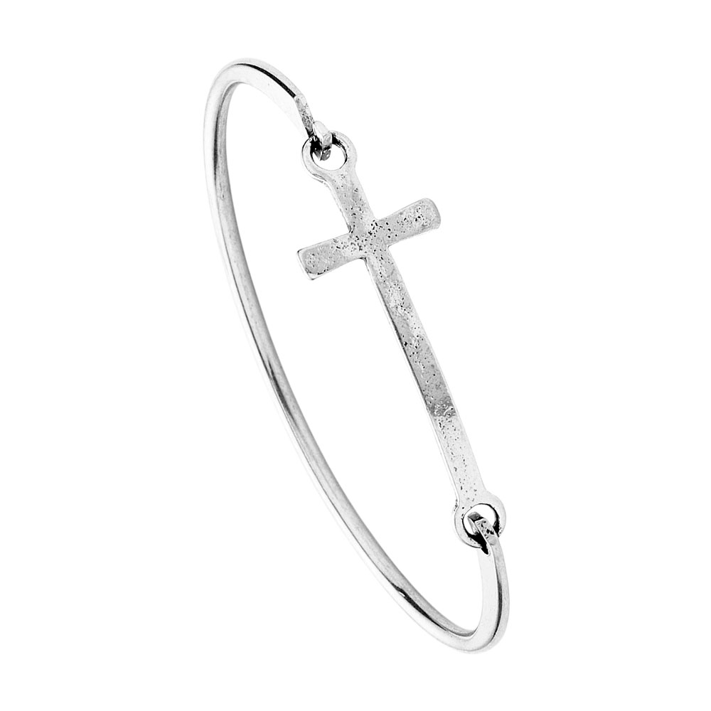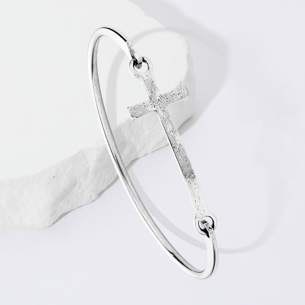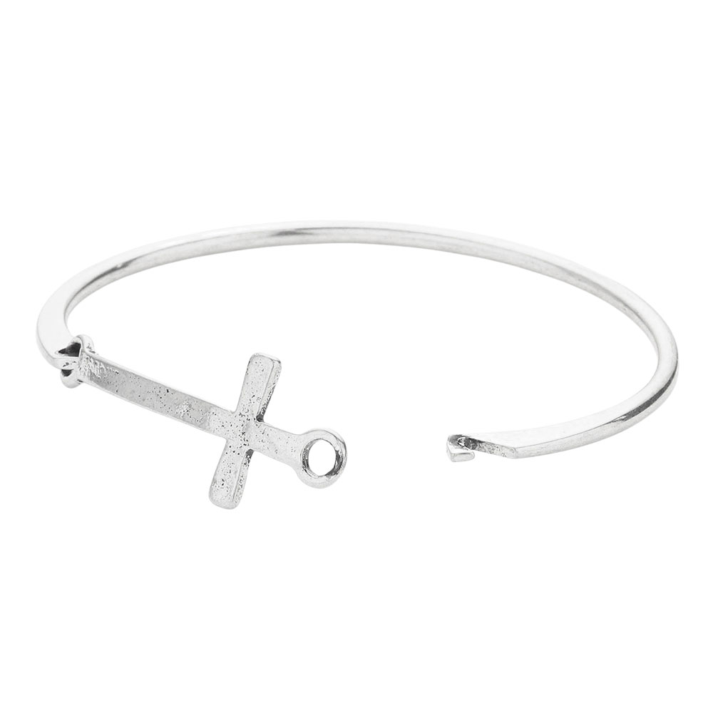 Details • Size : 0.6" H, 2.3" D • Hook Closure • This elegant bracelet features a slim horizontal cross charm on a delicate band, offering a modern take on a timeless symbol. Subtle and stylish, it’s perfect for everyday wear or layering with other pieces for a meaningful, contemporary look. • Lead and Nickel Compliant