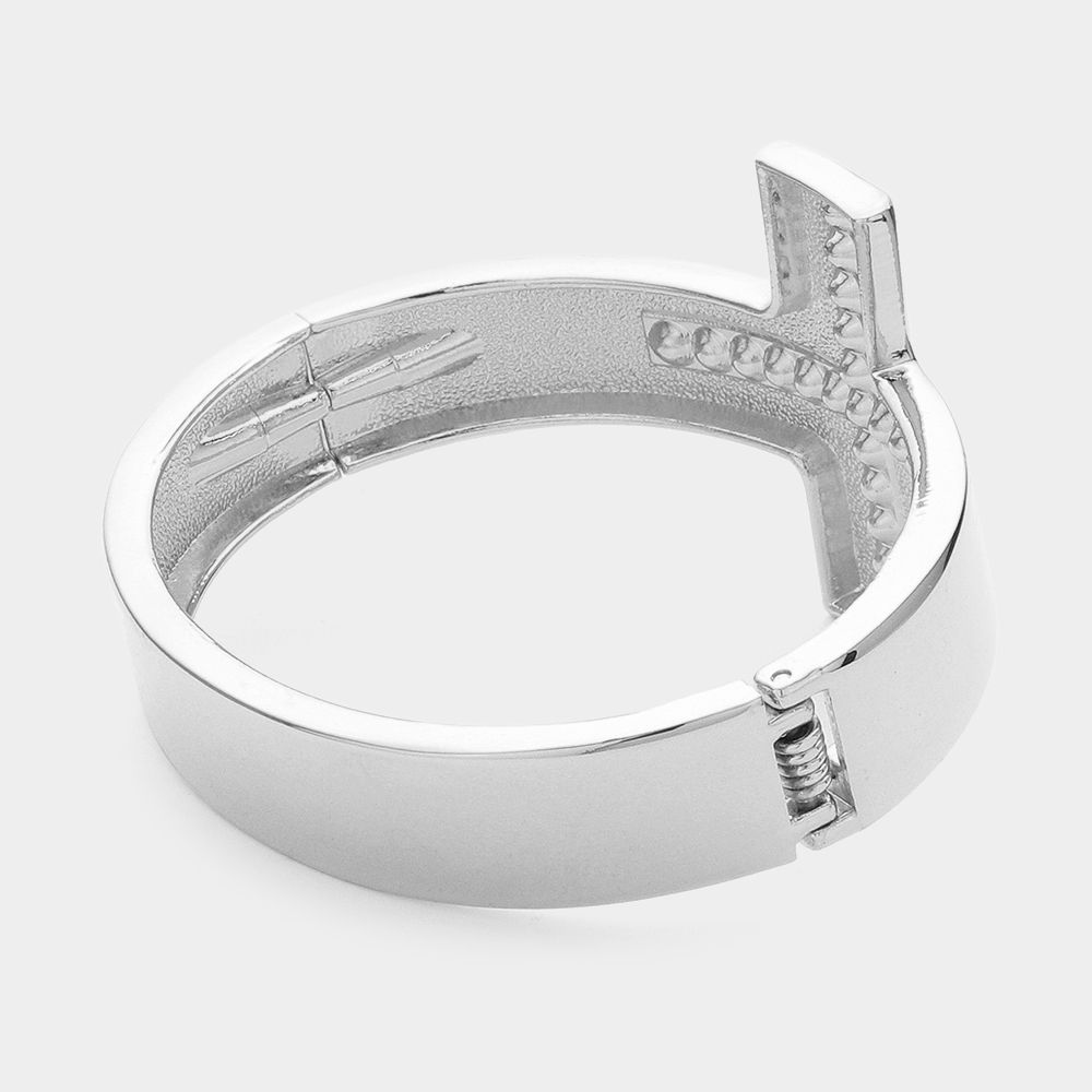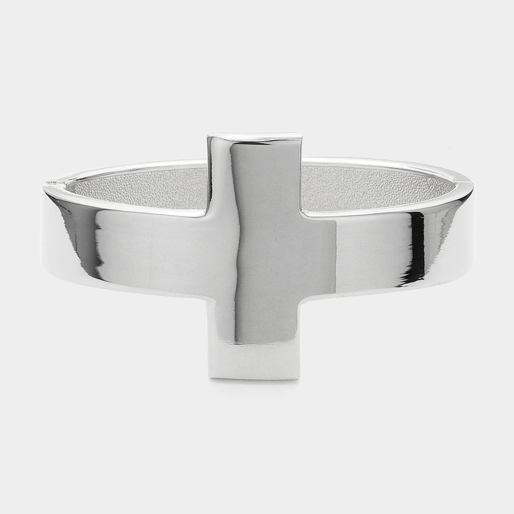 Hammered Metal Stone Paved Heart Cross Pendant Pointed Triple Layered Necklace