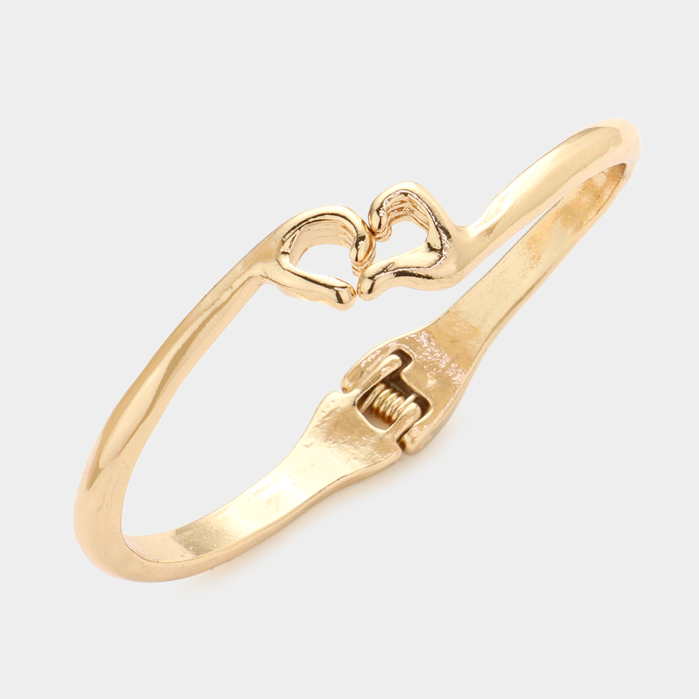 Metal Heart Hands Hinged Bangle Bracelet