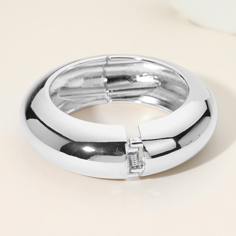 Hammered Metal Wide Dome Hinged Bangle Bracelet