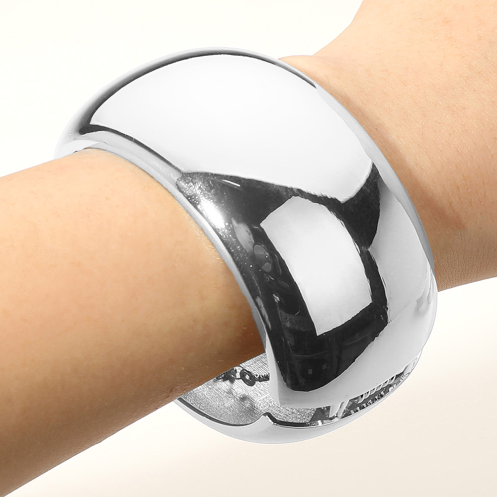 Details • Size : 1.5" H, 2.4" D • Hinged Closure • Elevate your look with this high-shine domed bangle bracelet, featuring a smooth and reflective surface for a bold, modern finish. Its sleek rounded shape adds effortless sophistication, making it a perfect standout accessory for day or night styling. • Lead and Nickel Compliant