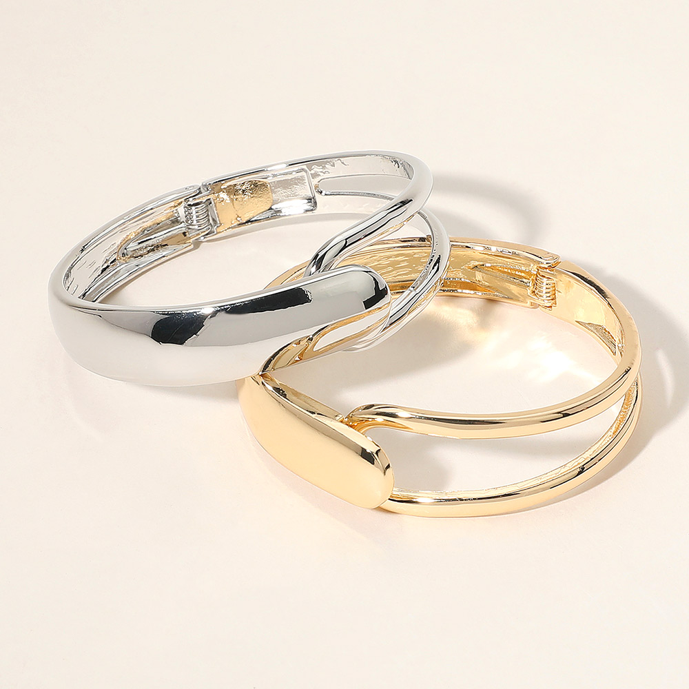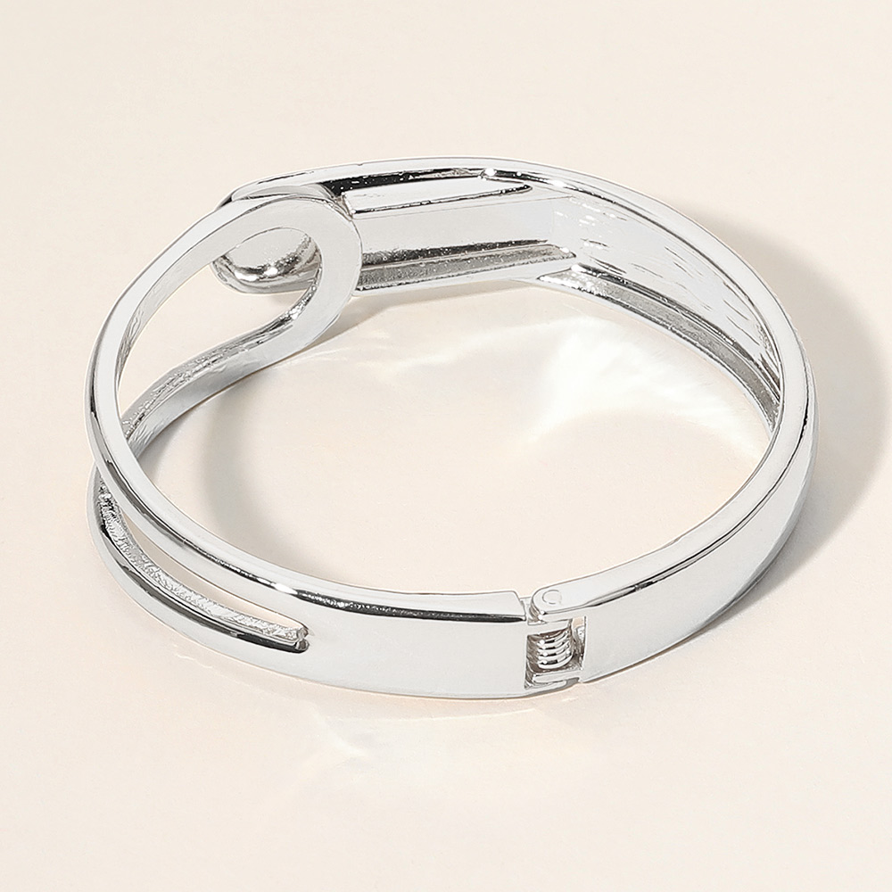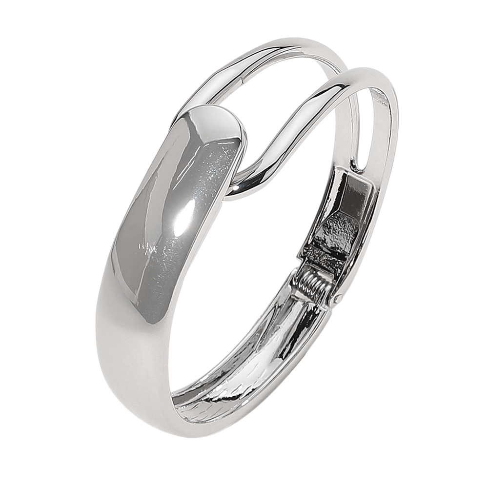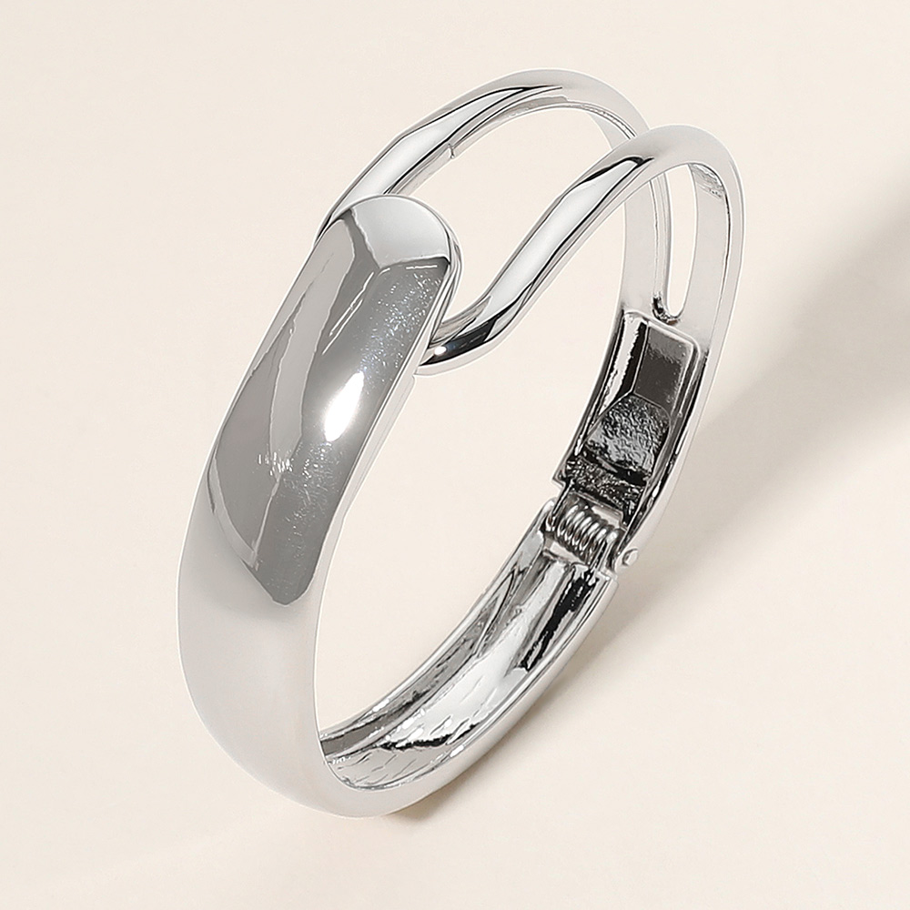 Details • Size : 0.75" H, 2.25" D • Hinged Closure • Elevate your accessory game with this sleek hinged bangle bracelet, featuring a clean, modern silhouette and an easy-to-wear design. Its smooth, polished finish makes it a chic statement piece for both casual and formal outfits without overpowering your look. • Lead and Nickel Compliant