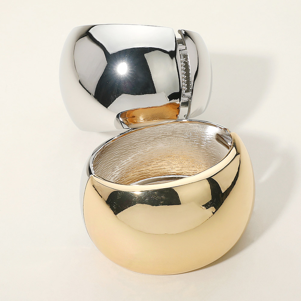Wide Rhinestone Pearl Paved Hinged Evening Bangle Bracelet