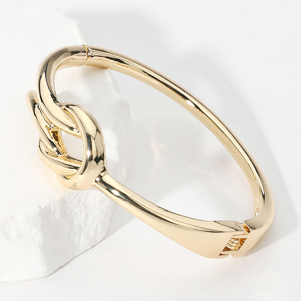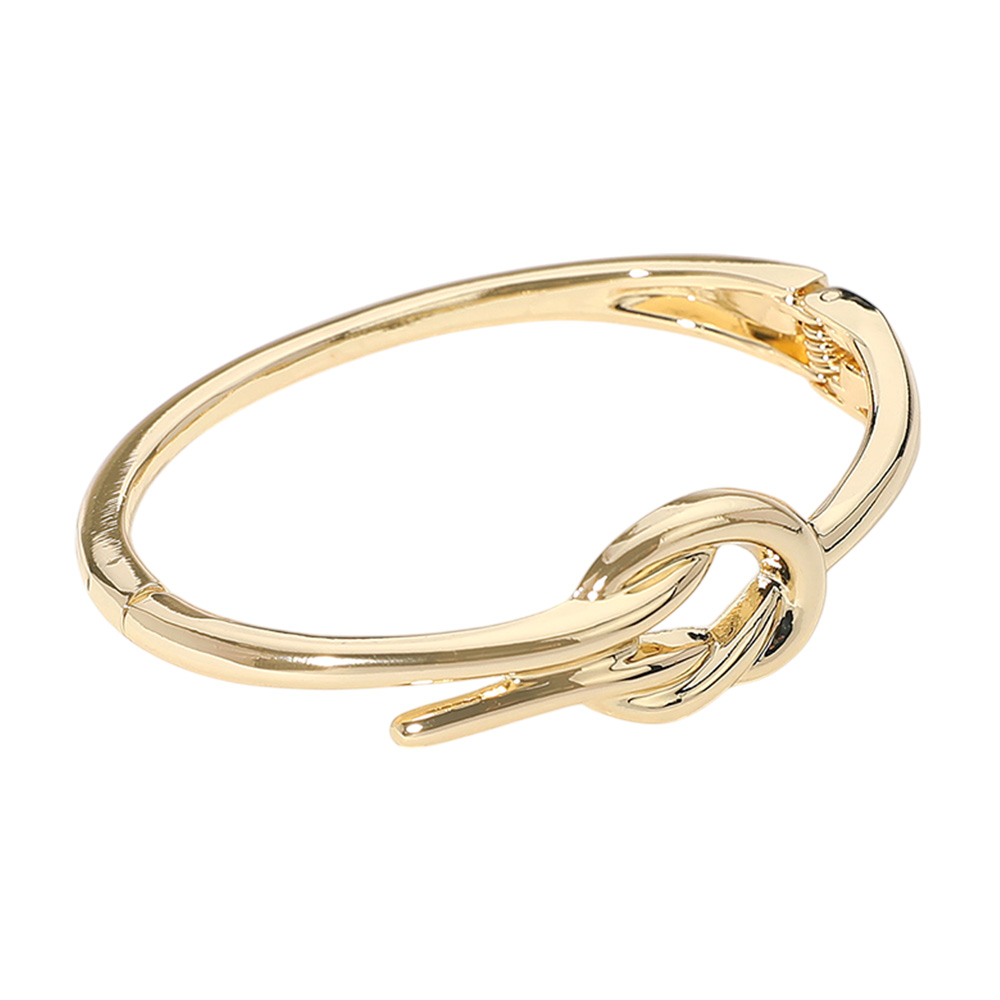 • This elegant bangle bracelet features a sculptural knot detail symbolizing unity and strength. With its smooth, high-shine finish and secure clasp, it offers a refined look that transitions effortlessly from everyday wear to special occasions.