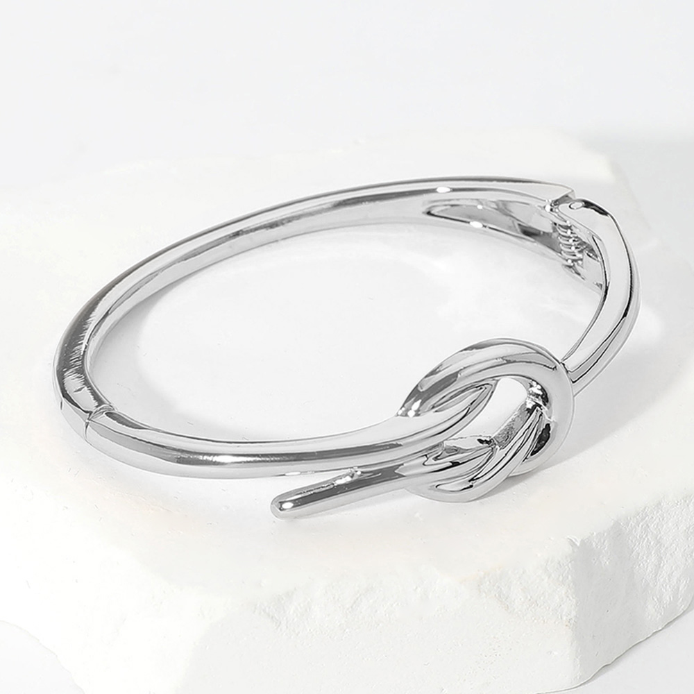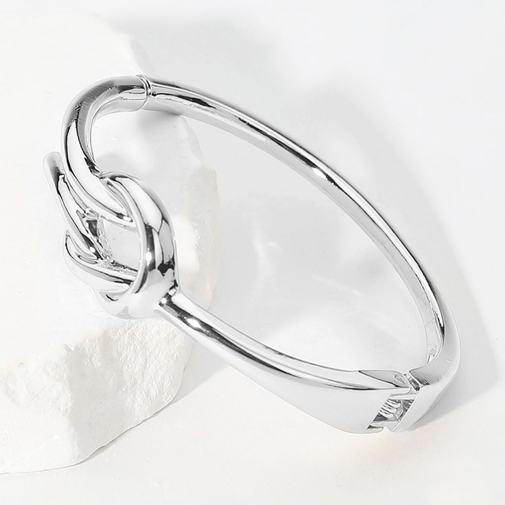 • This elegant bangle bracelet features a sculptural knot detail symbolizing unity and strength. With its smooth, high-shine finish and secure clasp, it offers a refined look that transitions effortlessly from everyday wear to special occasions.