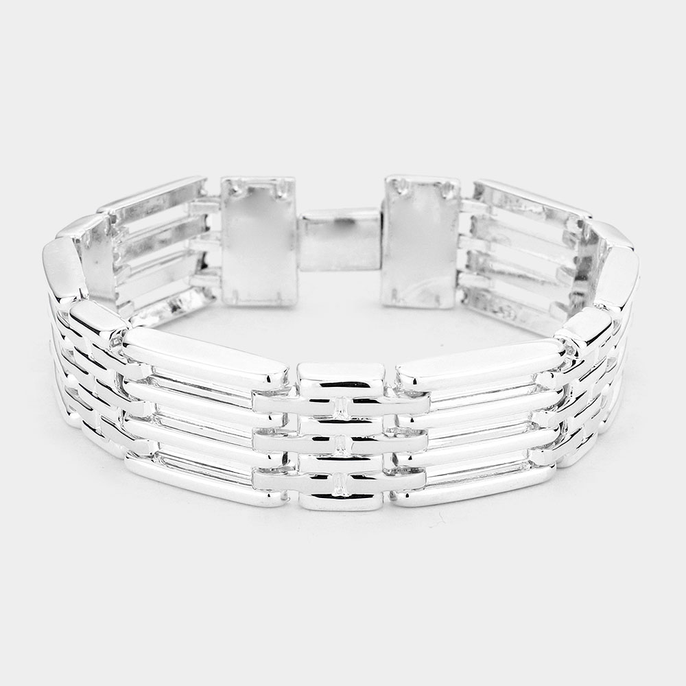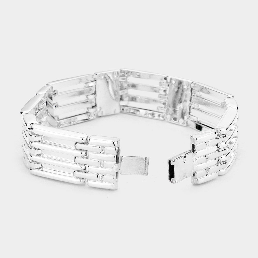 Textured Abstract Wavy Plate Pendant Accented Statement Necklace