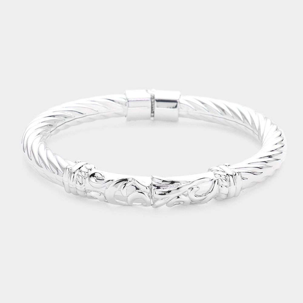 Pattern Detailed Metal Hinged Bangle Bracelet