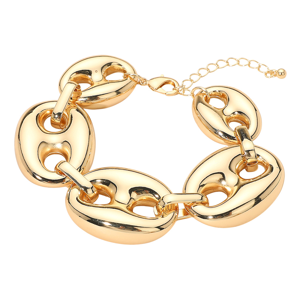 Details • Size : 1.2" H, 8.25" + 2" L • Lobster Clasp Closure • Turn heads with this statement link bracelet crafted with oversized oval links and a sleek polished finish. Its bold and modern design makes it a standout accessory, perfect for adding a touch of contemporary style to both casual and dressy outfits. • Lead and Nickel Compliant