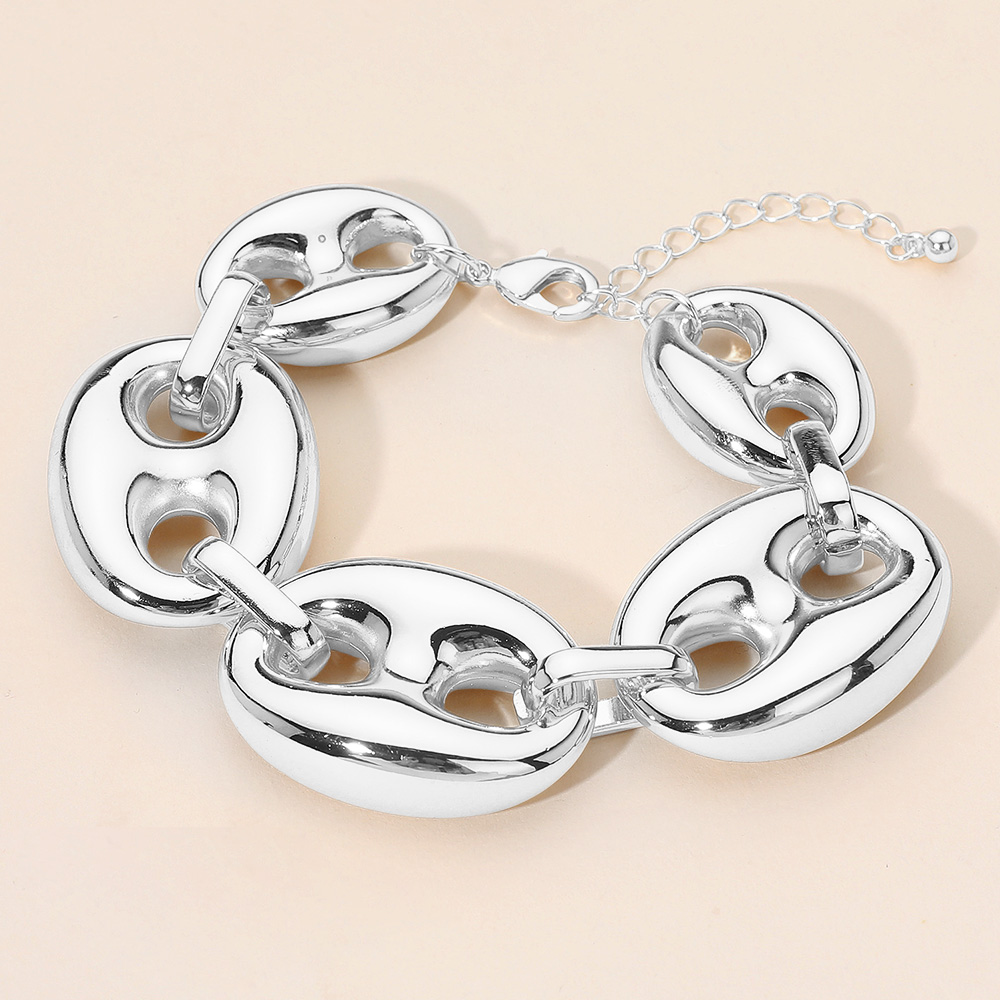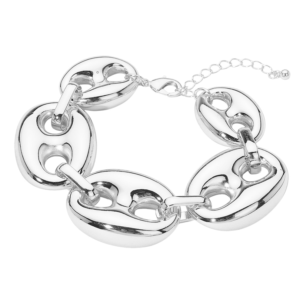 • Turn heads with this statement link bracelet crafted with oversized oval links and a sleek polished finish. Its bold and modern design makes it a standout accessory, perfect for adding a touch of contemporary style to both casual and dressy outfits.
