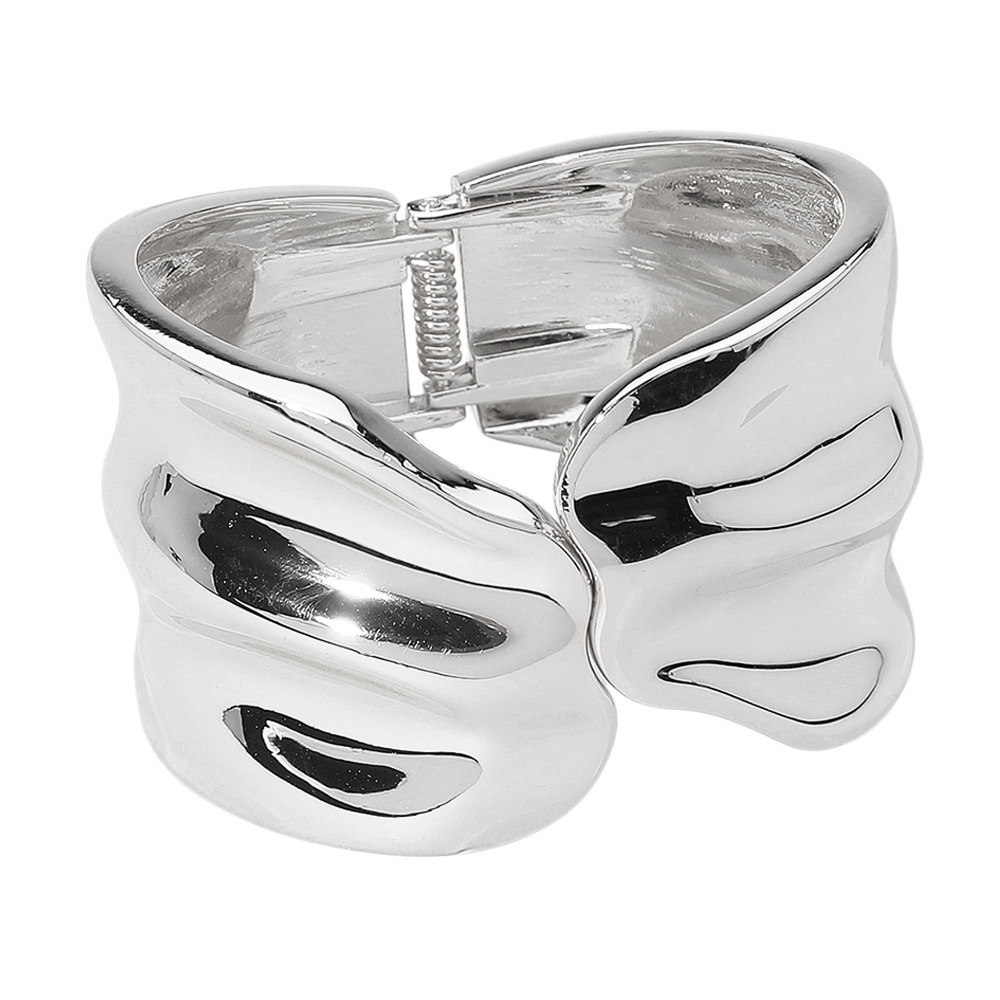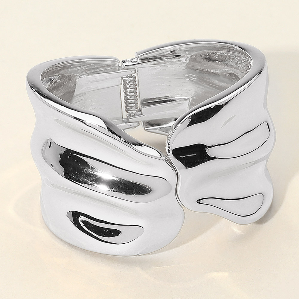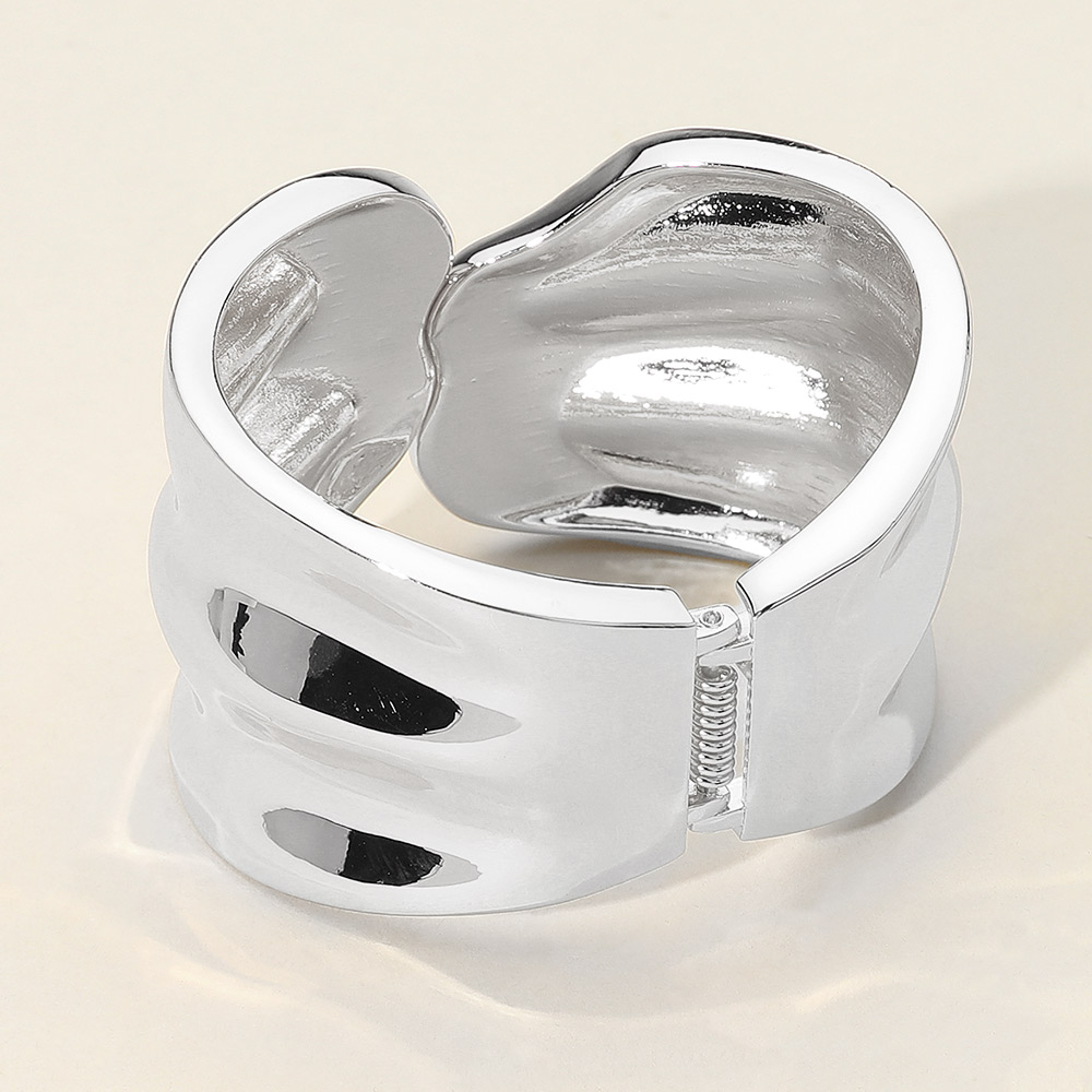 Sculpted Wavy Wide Metal Hinged Bangle Bracelet