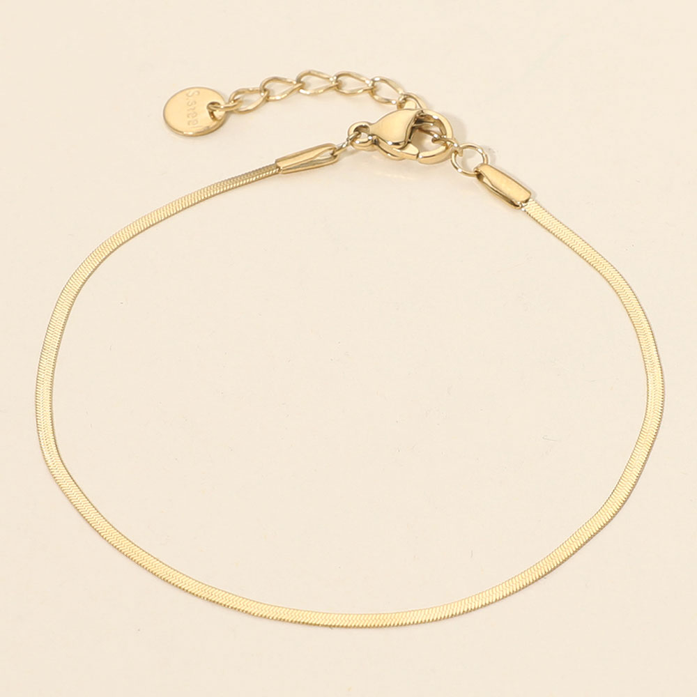 • Sleek flat chain bracelet designed with a smooth, streamlined profile for effortless everyday styling. Its minimalist silhouette layers easily with other pieces or stands alone for a refined look, making it ideal for stacking, gifting, and versatile fashion jewelry collections.
