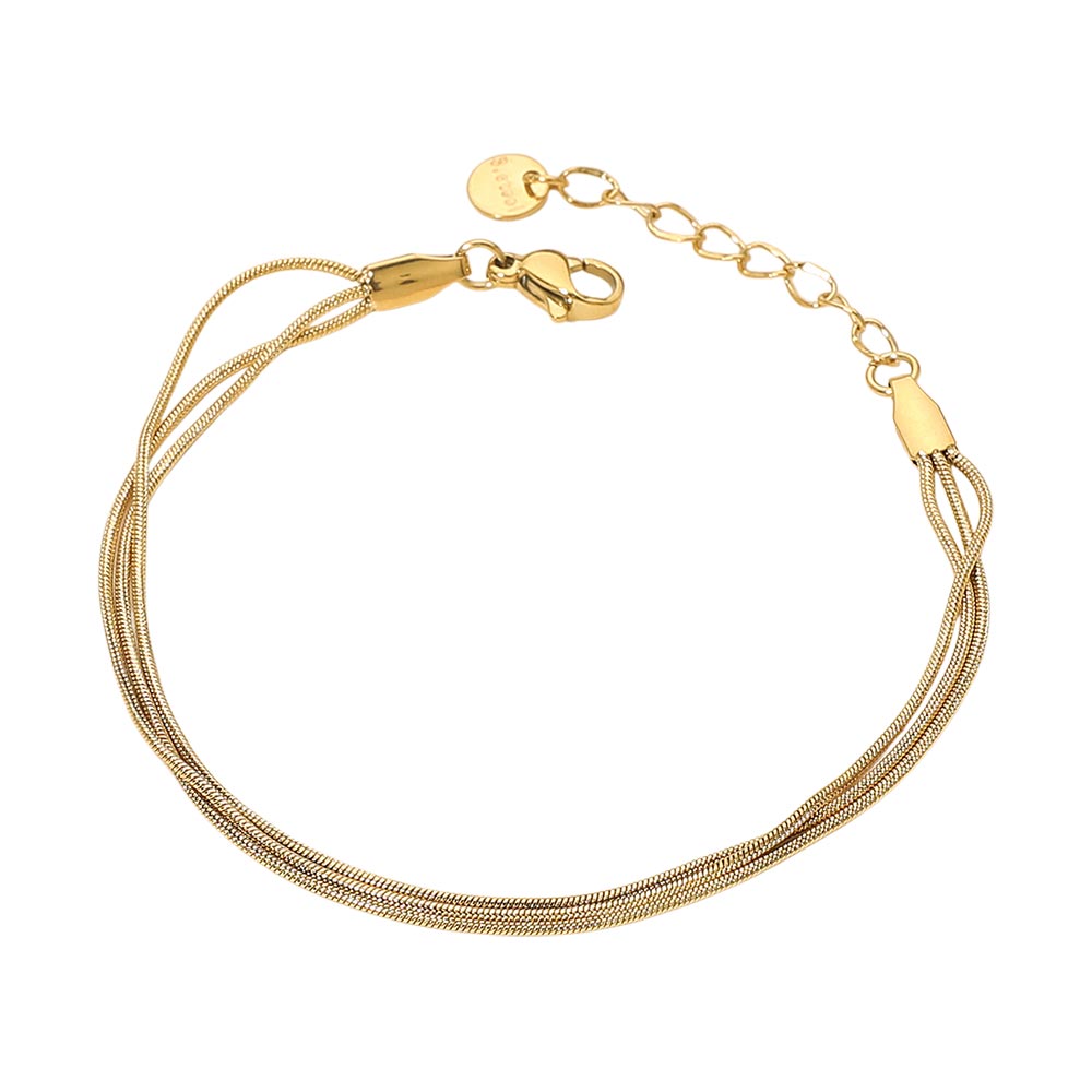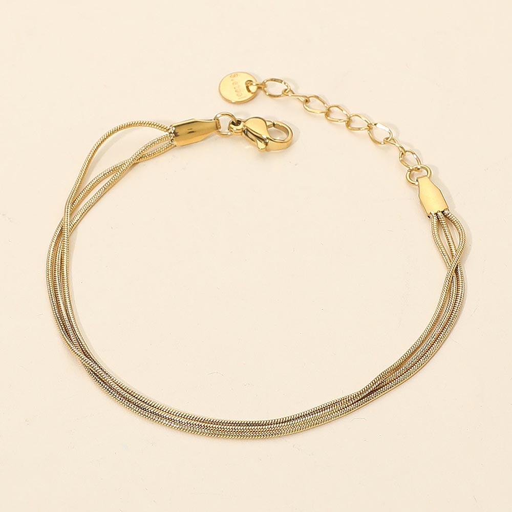 Details • Size : 0.2" H, 8.5" + 1.5" L • Lobster Clasp Closure • Discover a sleek multi-strand bracelet featuring a refined, minimalist design that adds subtle luxury to any look. Its adjustable closure ensures a comfortable fit, making it ideal for everyday wear or special occasions. A timeless accessory that enhances any jewelry collection. • Stainless Steel