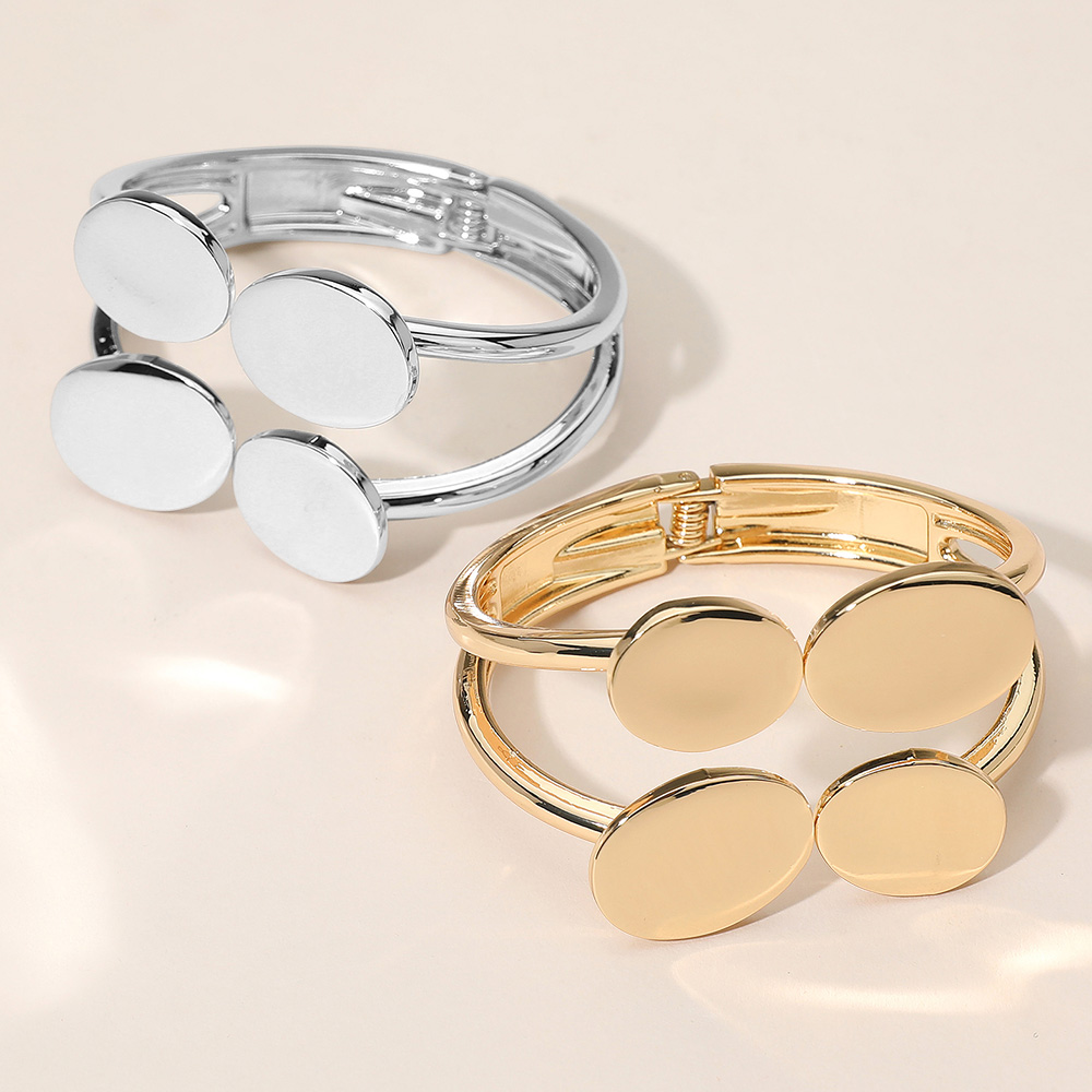 Details • Size : 1.5" H, 2.3" D • Hinged Closure • Add a touch of modern elegance with this oval cuff bracelet featuring a sleek geometric design. Perfect for both casual and formal looks, this statement accessory enhances your style with contemporary sophistication and timeless appeal.