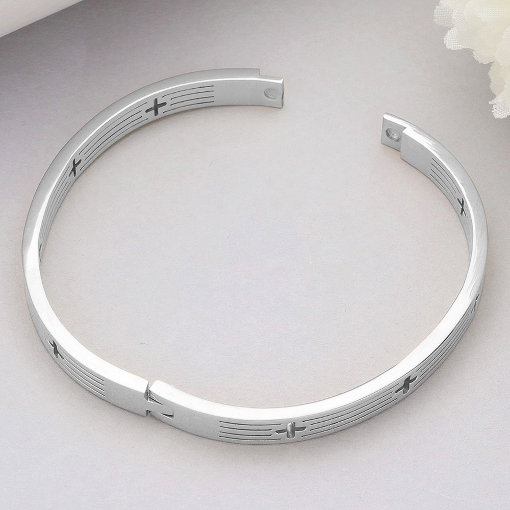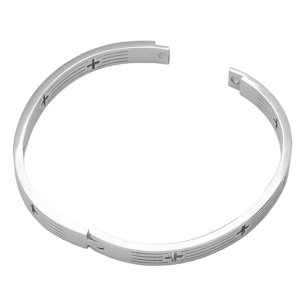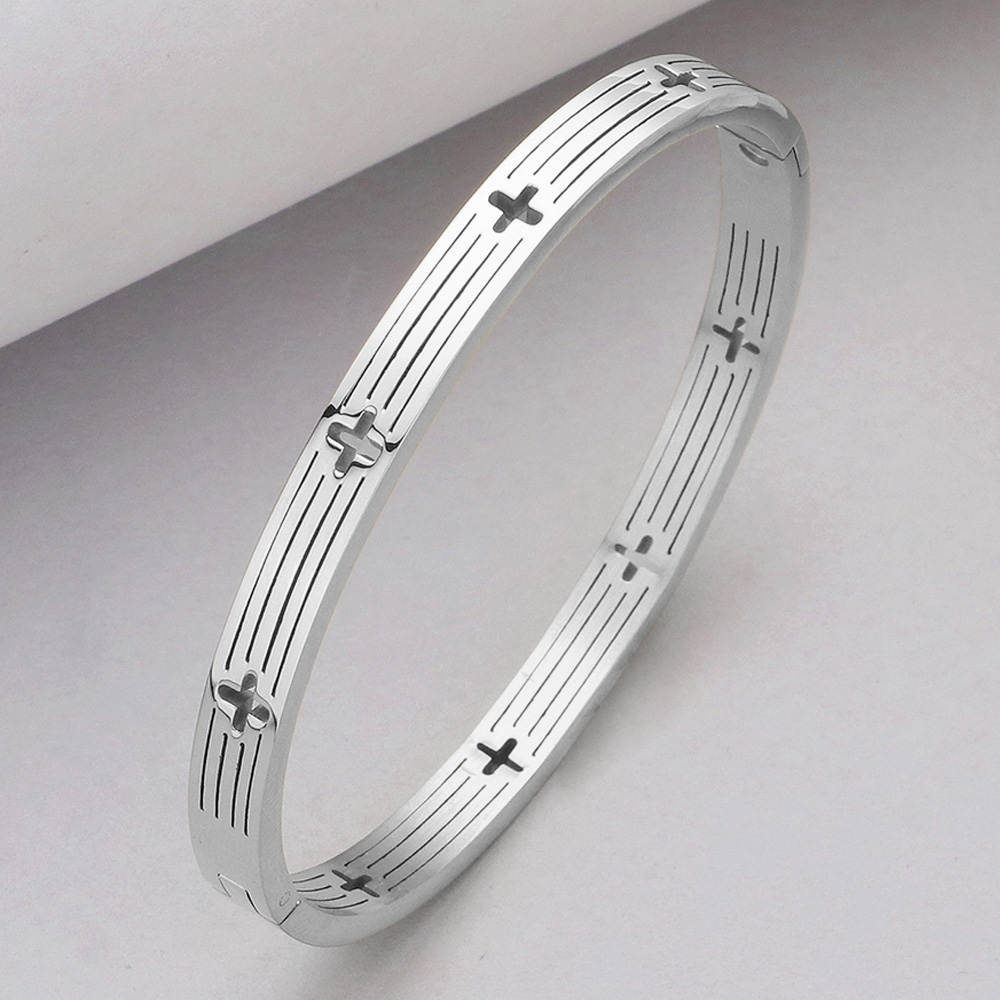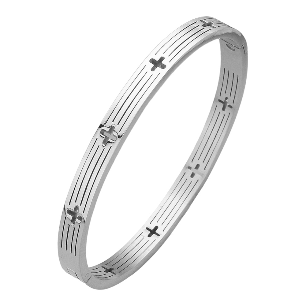Stainless Steel Cross Cutout Hinged Bangle Bracelet
