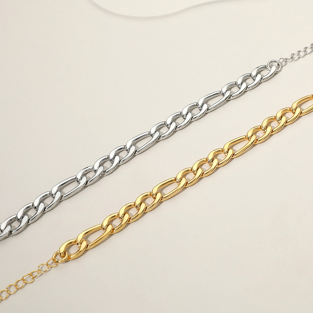 Stainless Steel CZ Embellished Metal Chain Link Necklace