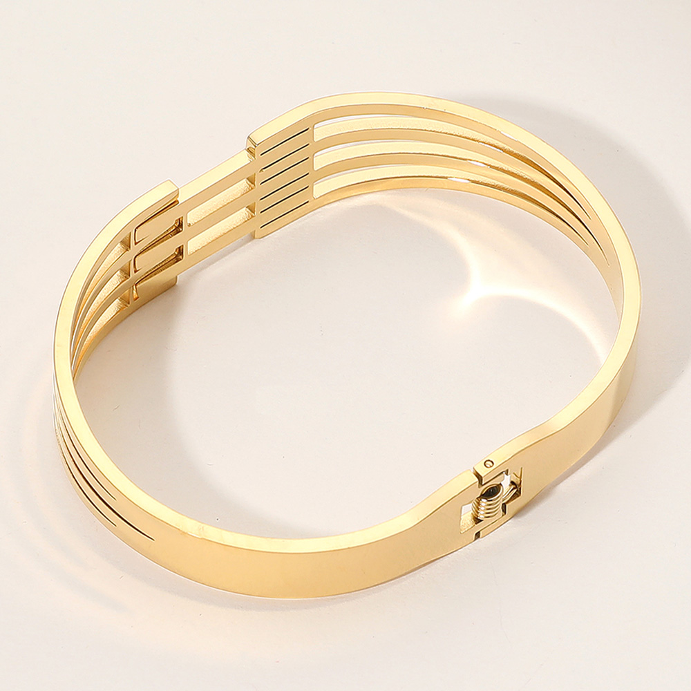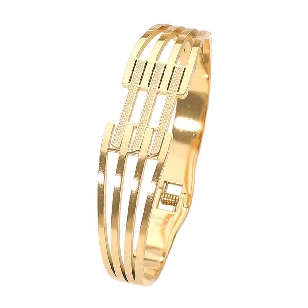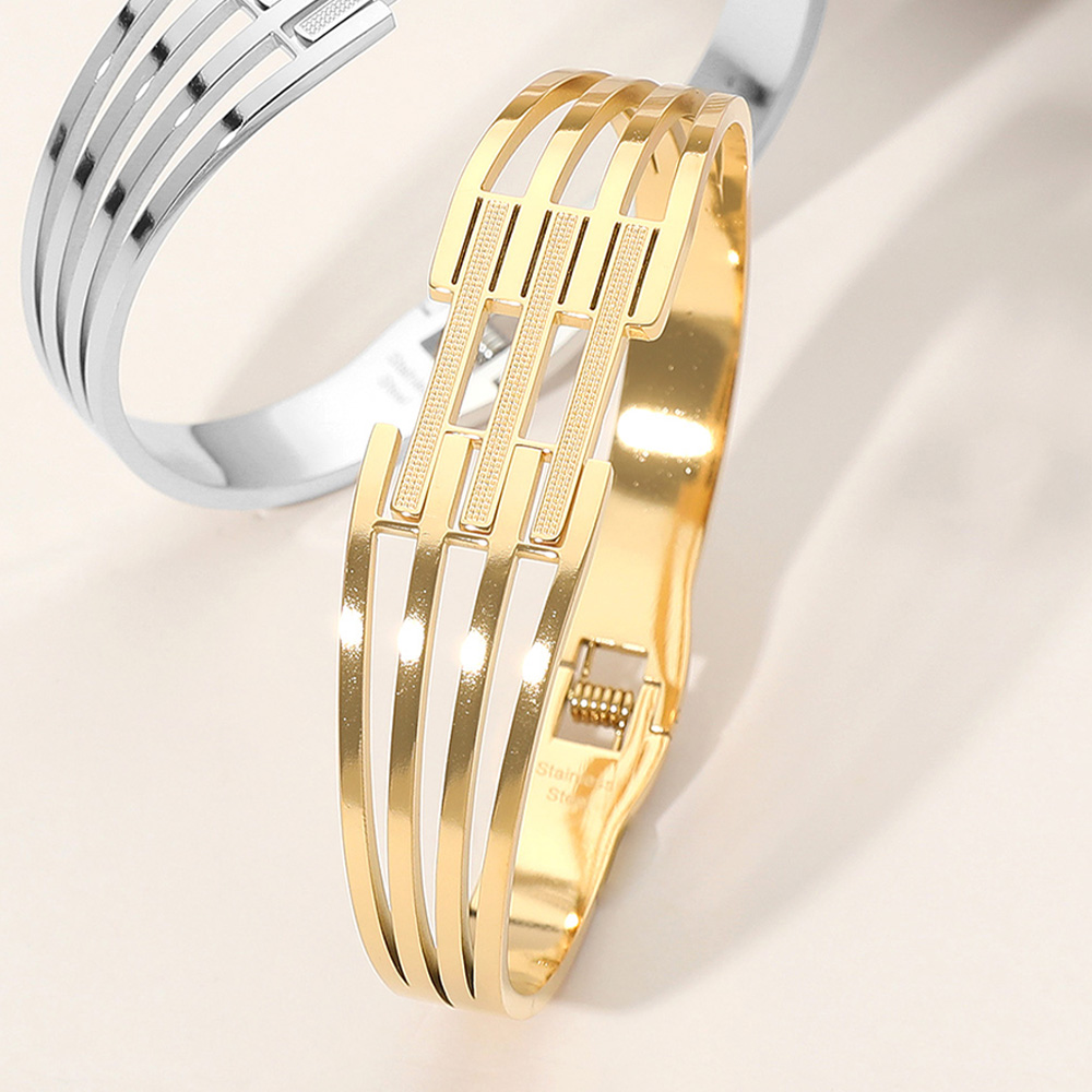 Stainless Steel Geometric Cutout Hinged Bangle Bracelet