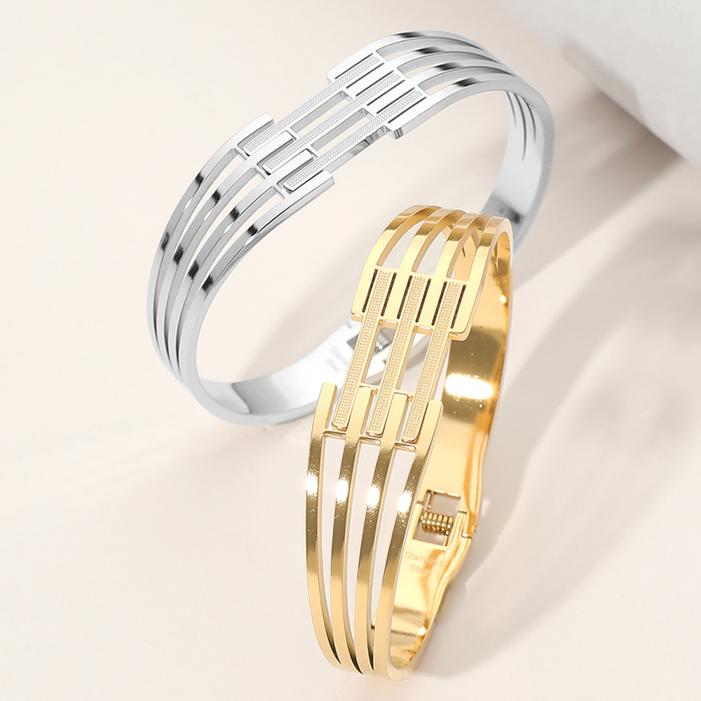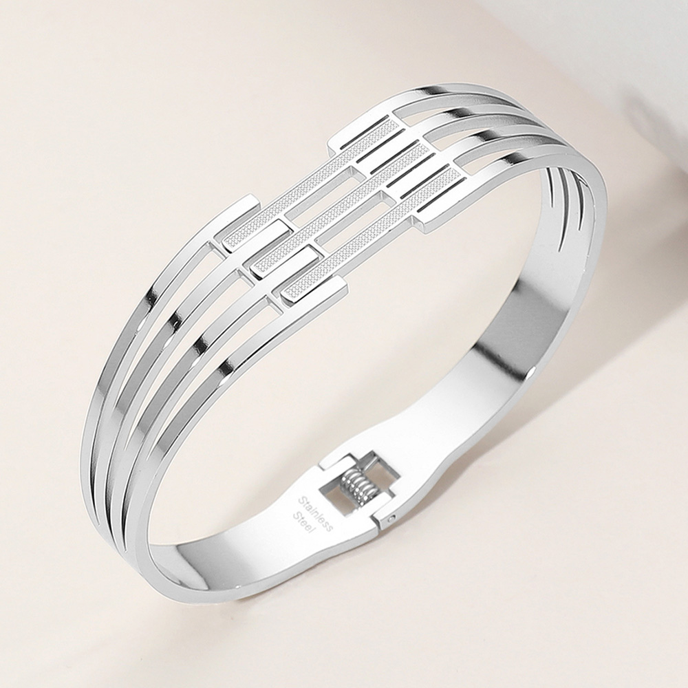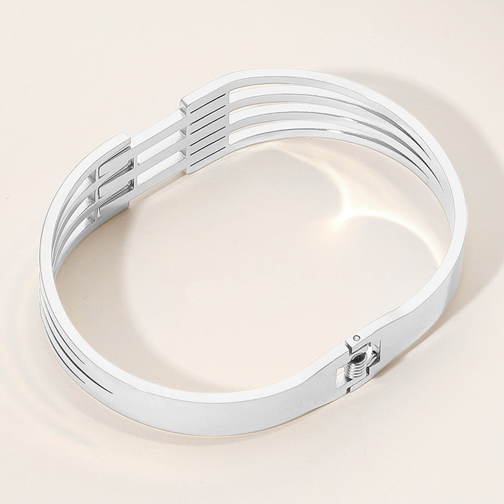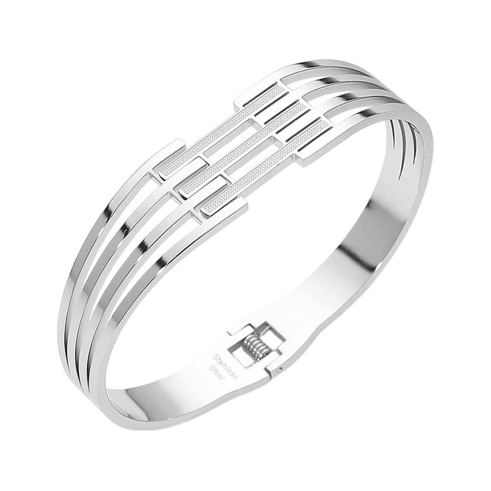 Stainless Steel Geometric Cutout Hinged Bangle Bracelet