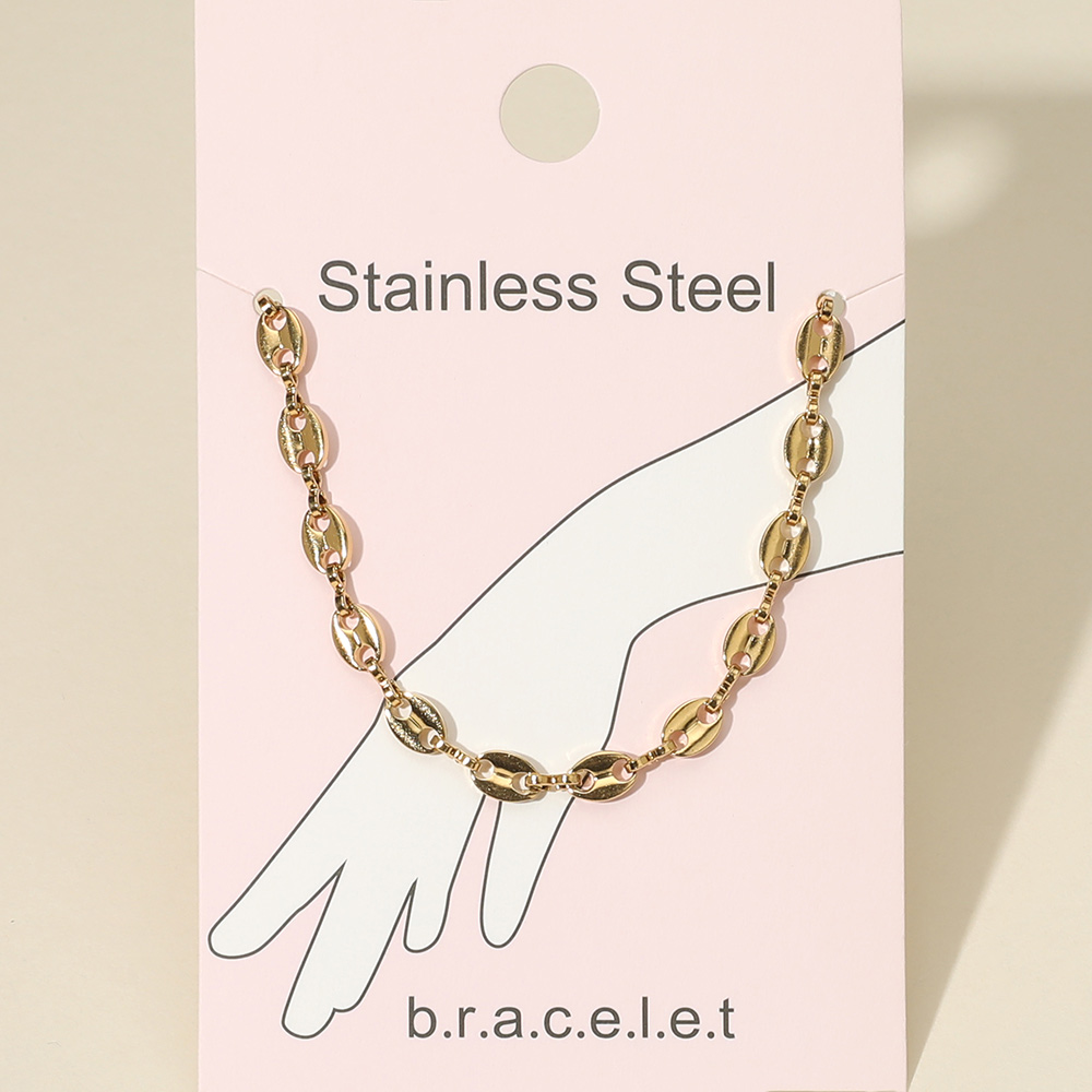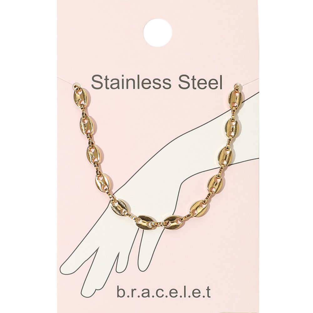 Details • Size : 0.25" H, 6.5" + 1.5" L • Lobster Clasp Closure • Bold stainless steel bracelet featuring chunky oval links with a polished finish. A versatile and modern accessory perfect for layering or wearing solo with casual or formal outfits. • Stainless Steel