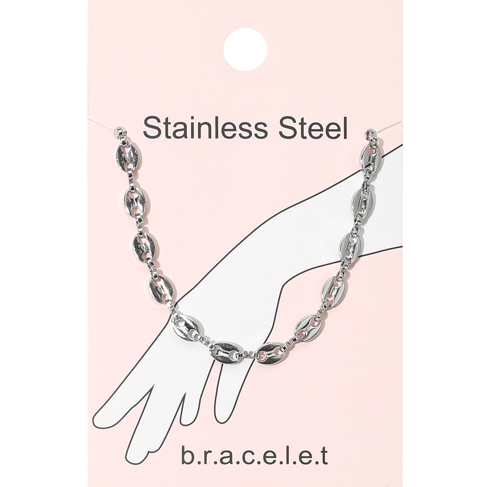 • Bold stainless steel bracelet featuring chunky oval links with a polished finish. A versatile and modern accessory perfect for layering or wearing solo with casual or formal outfits.